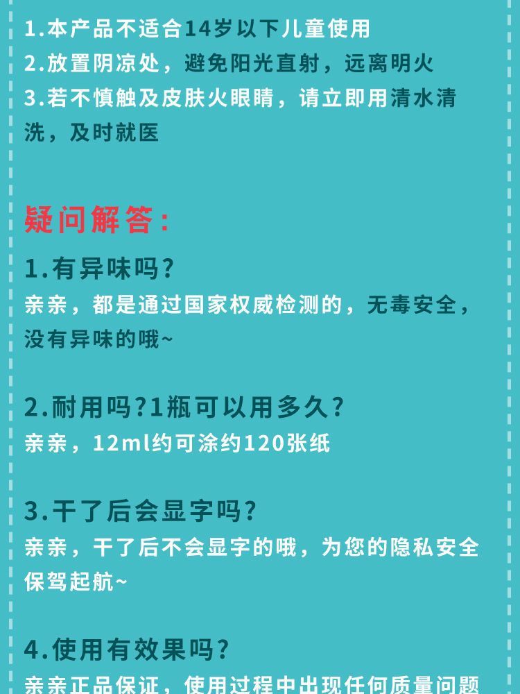 Жидкость для коррекции термобумаги JA-601, защитная информация, быстро сохнущий кодовый маркер