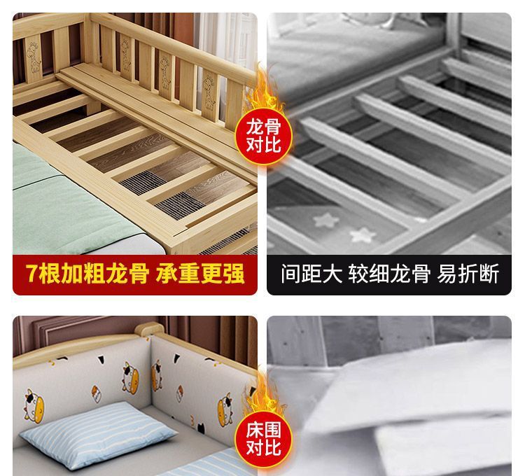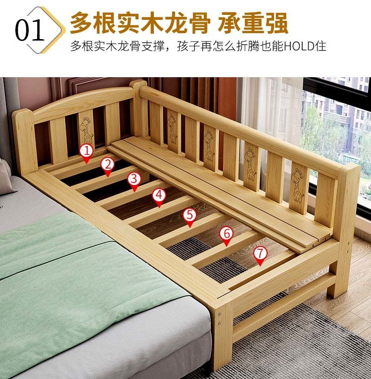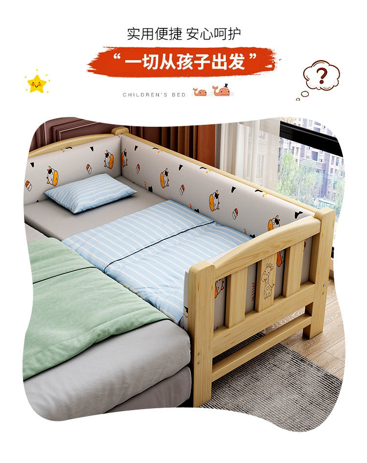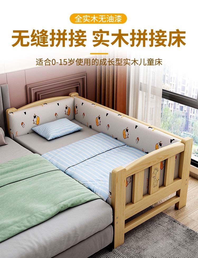 Детская сплошная кровать из массива дерева, домашняя сплошная большая кровать, расширенная кроватка, увеличенная кровать, оптовая иностранная торговля