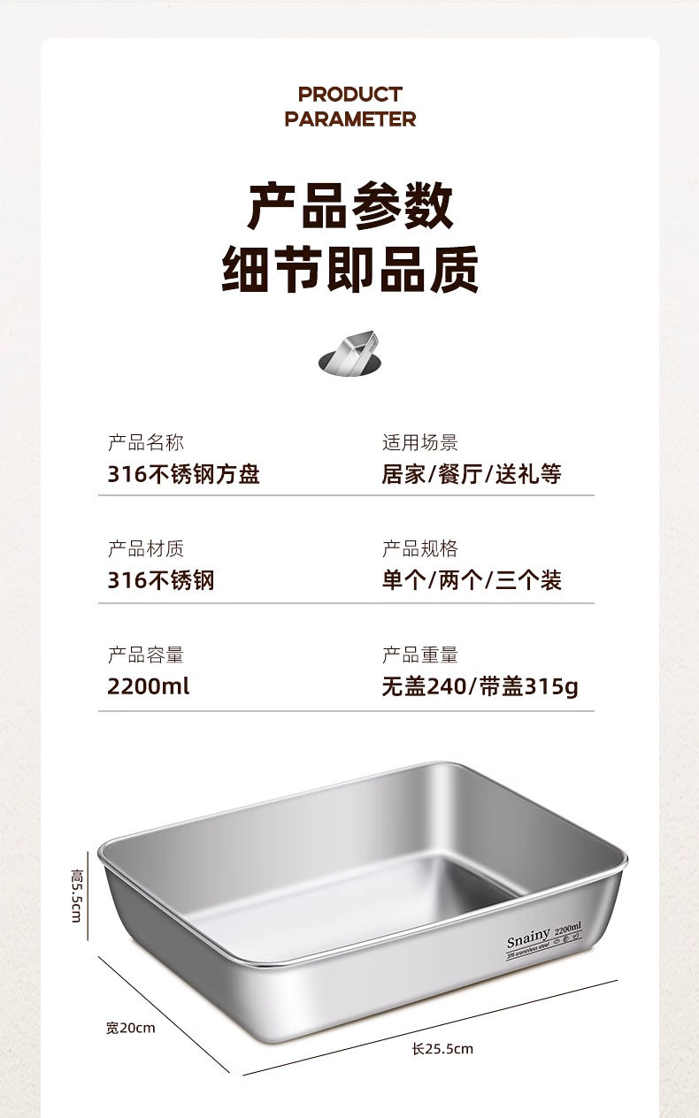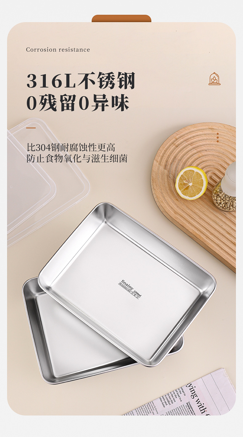 Квадратная тарелка из нержавеющей стали 316, пищевая, прямоугольный поднос с крышкой, большая глубокая тарелка, утолщенный квадратный таз