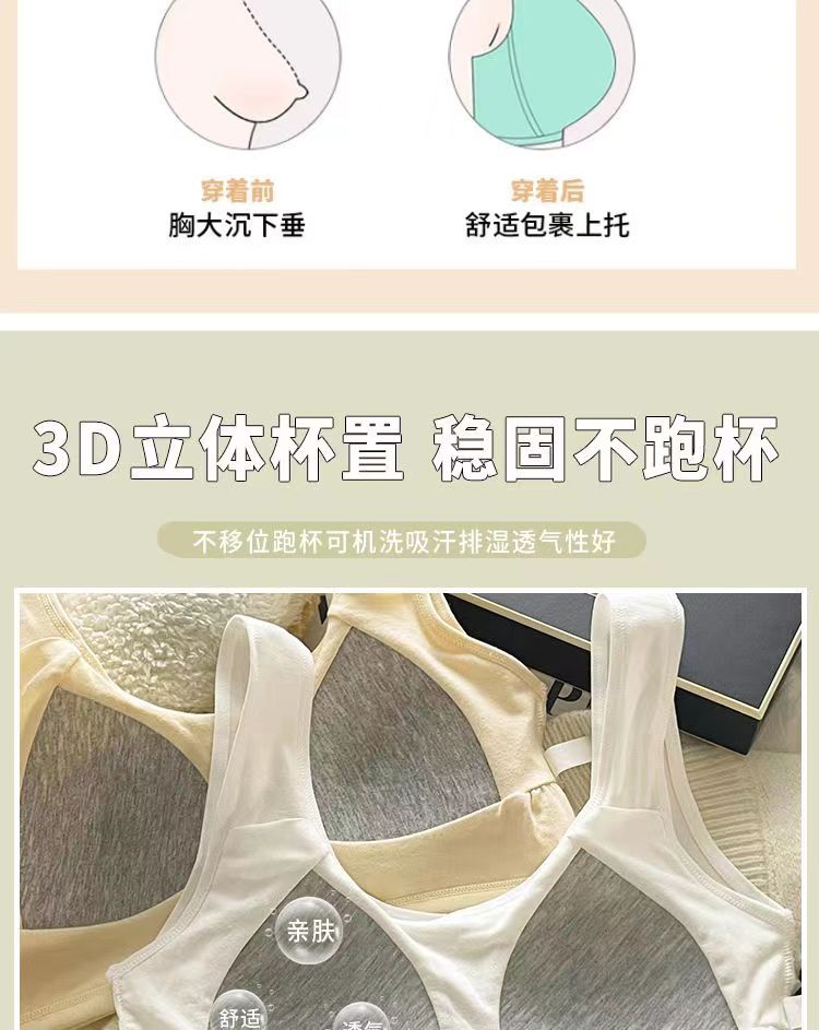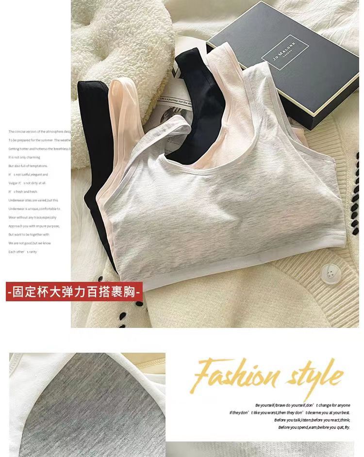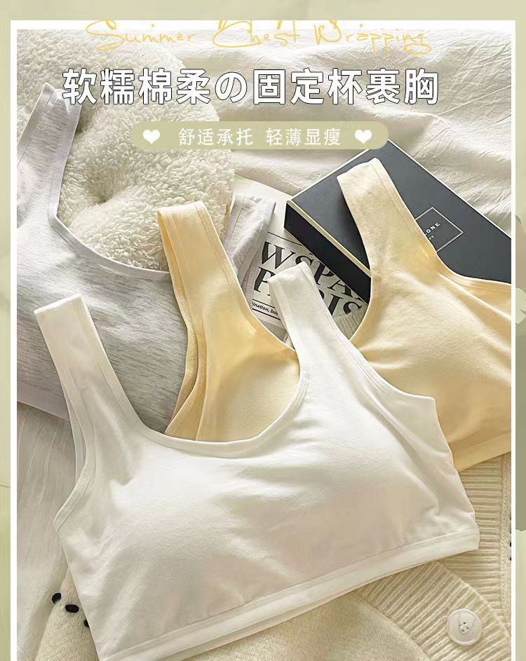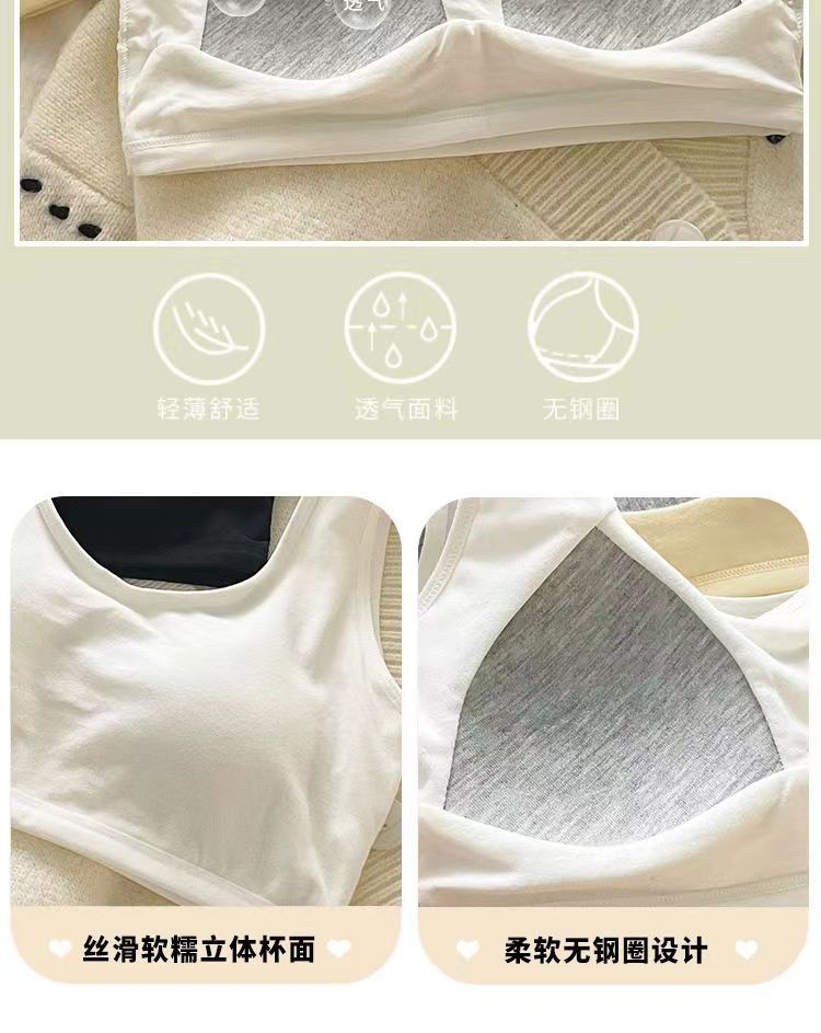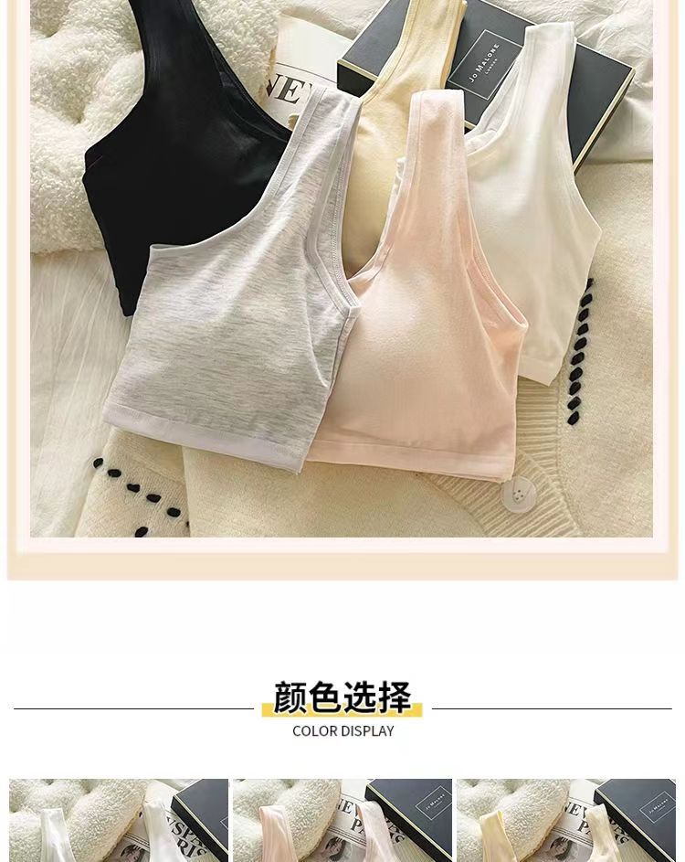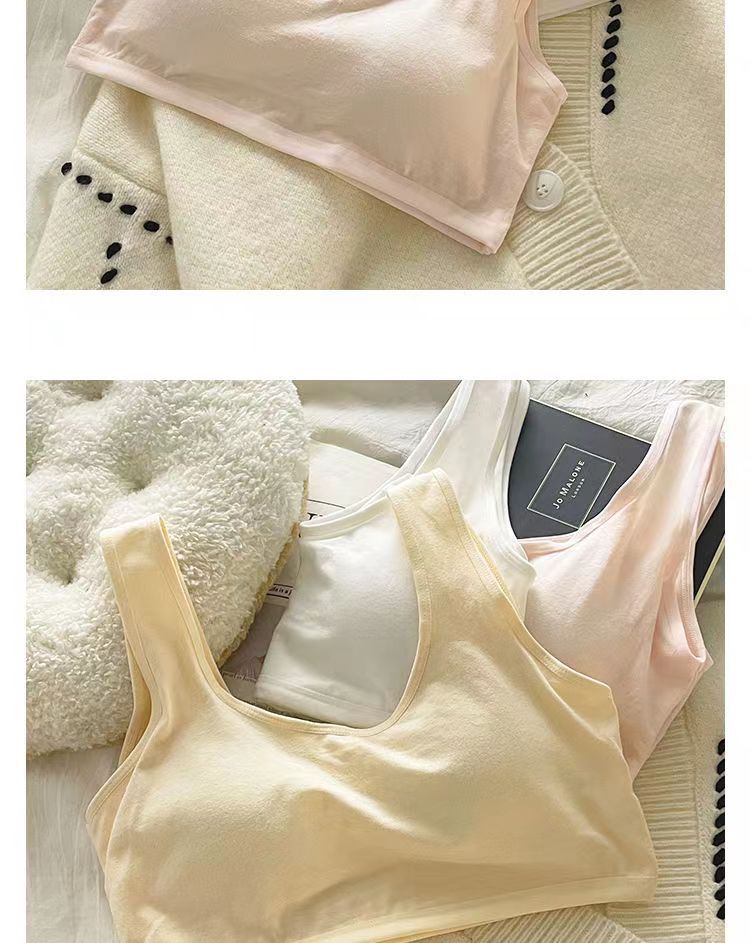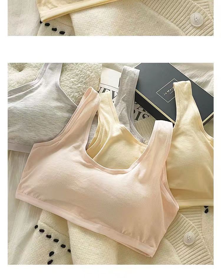 Бюстгальтер с фиксированными чашками из чистого хлопка, комфортное и бесшовное нижнее белье, спортивный жилет для учащихся средней школы без косточек