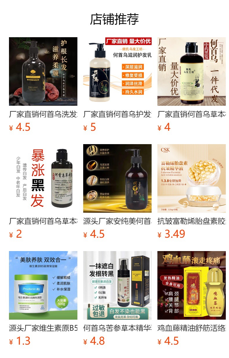 ![]() | 300ml caojiangtang polygonum multiflorum herbal hair serum | 1шт: ¥4.00, 700шт: ¥3.00, 7000шт: ¥2.00 | 9992372 | 5779485016451 |