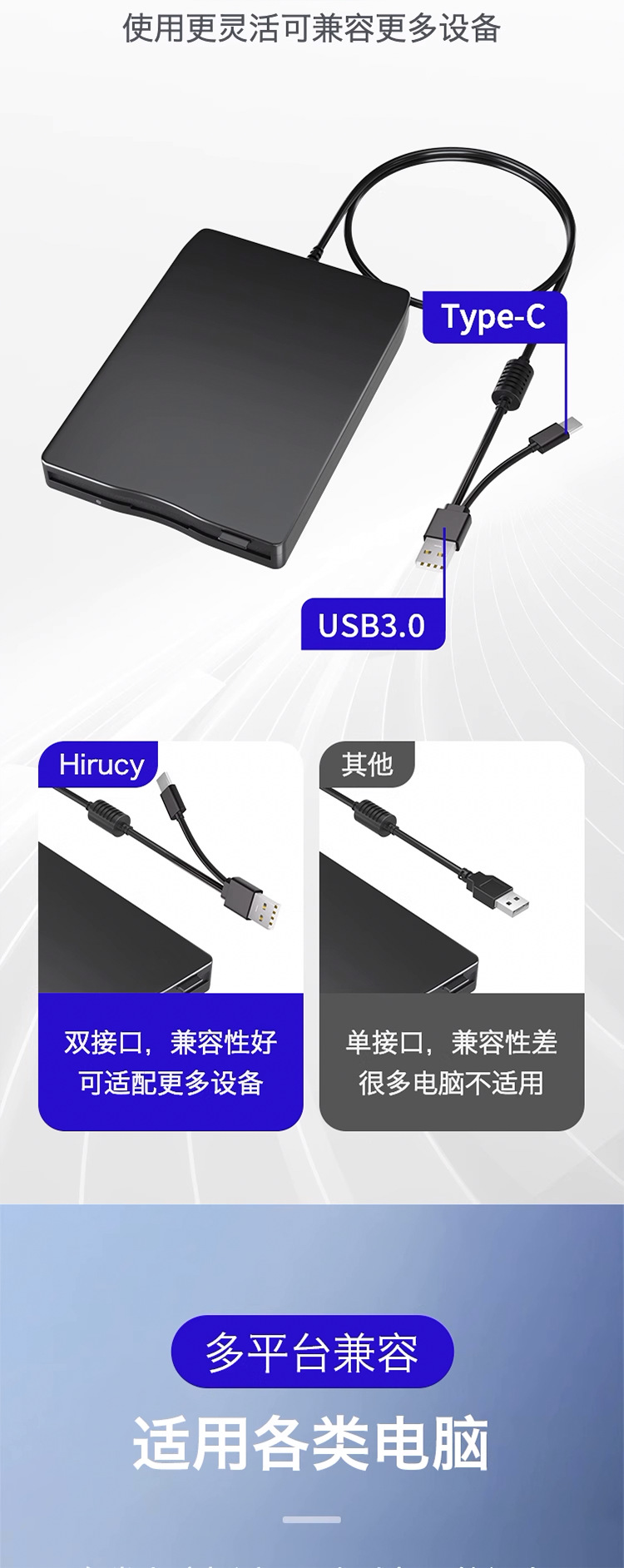 Тип-C Двойной Интерфейс USB Дисковод 3.5 дюйма Внешний Дисковод Компьютера 1.44м Дискетный Дисковод Портативный