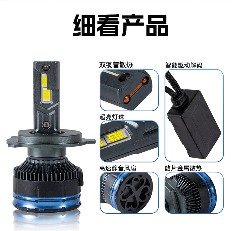 Автомобильная светодиодная фара с двойной медной трубкой, высокая мощность, H7 H11 H4 9005, заменяет галогеновые лампы, адаптер, линза