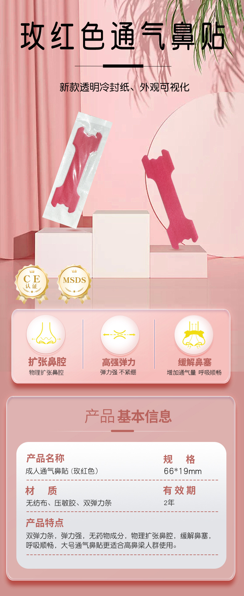 Кросс-бордерные производители настраивают новые розовые вентиляционные назальные пластыри, пластыри для расширения носа для облегчения заложенности носа