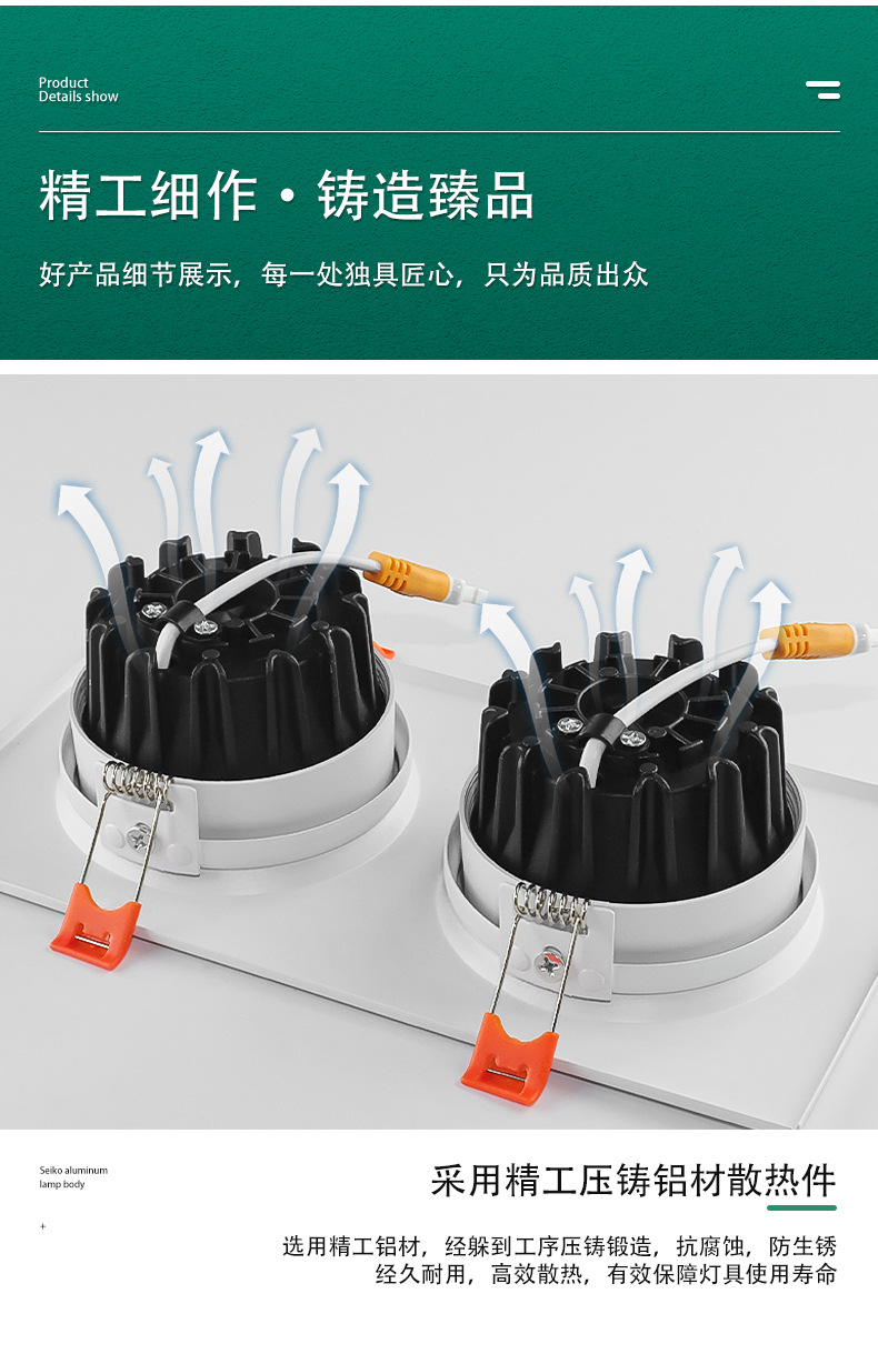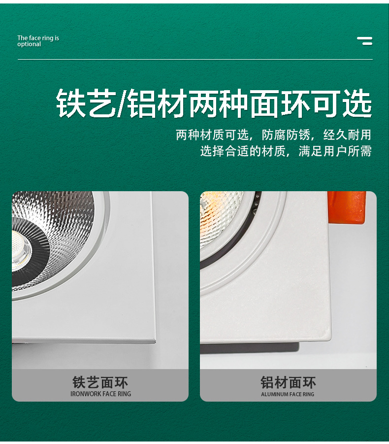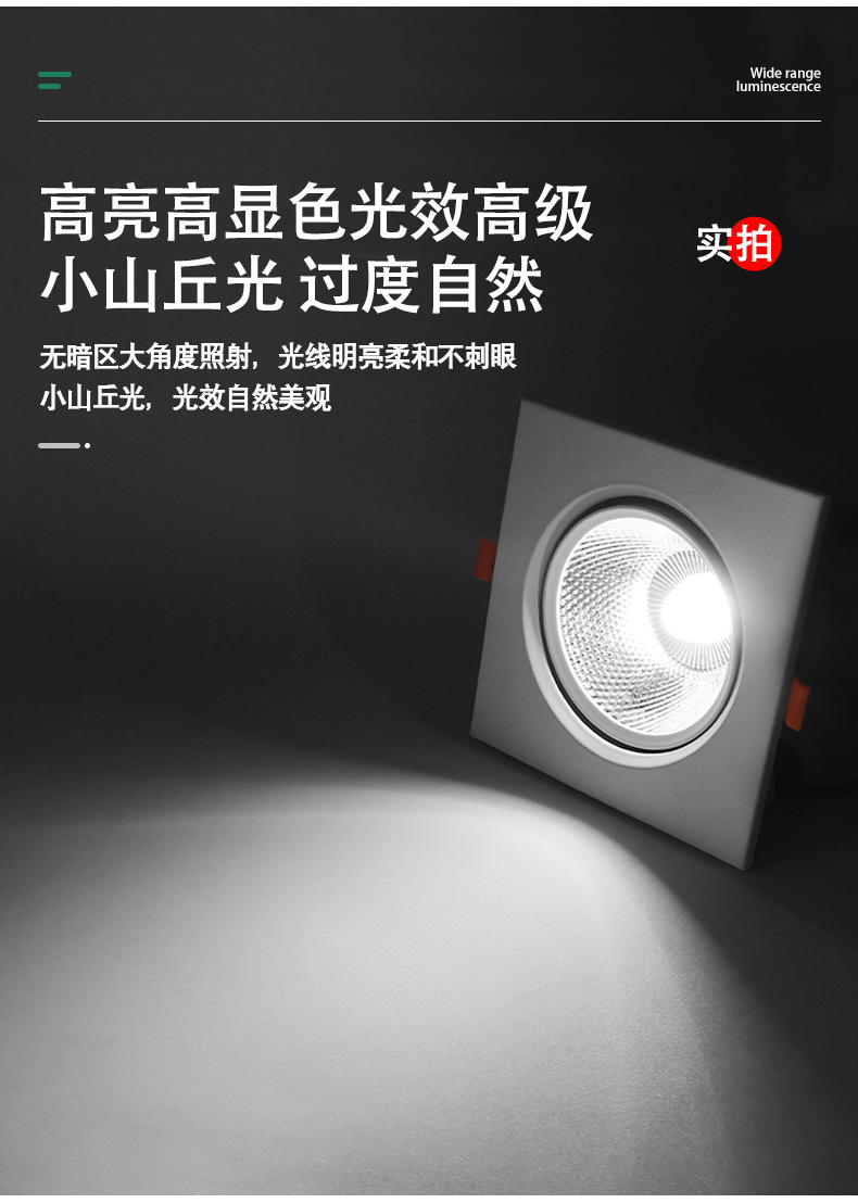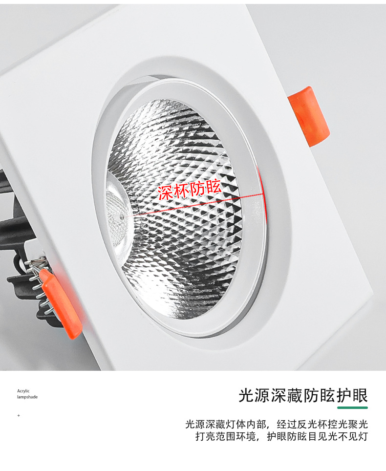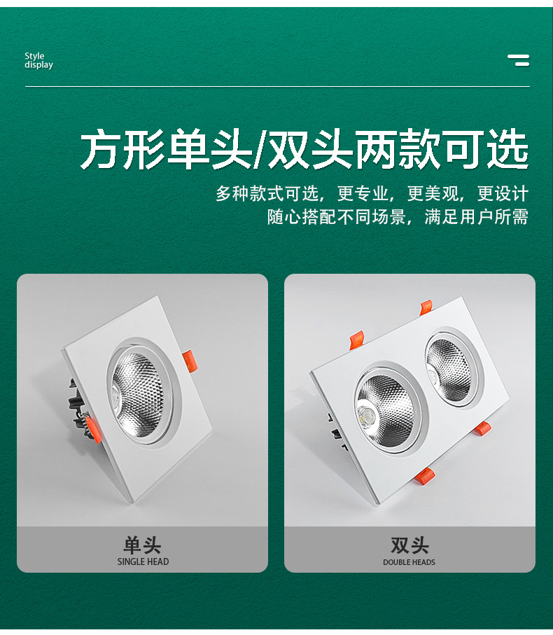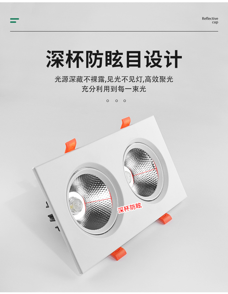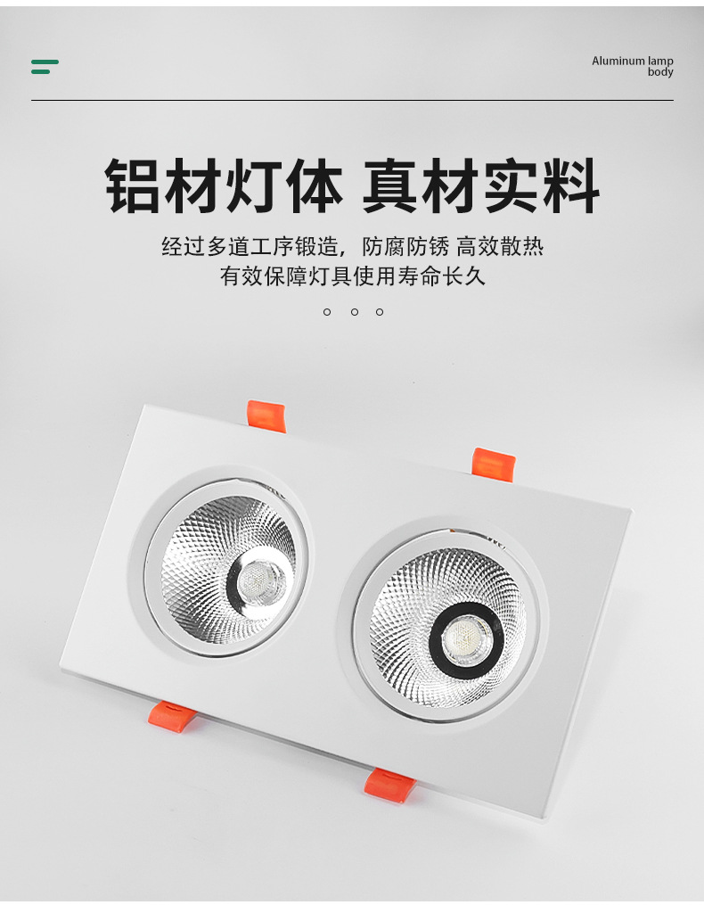 Квадратный встраиваемый COB прожектор, алюминиевая поверхность, антивспышечный потолочный светильник на одну/две головы