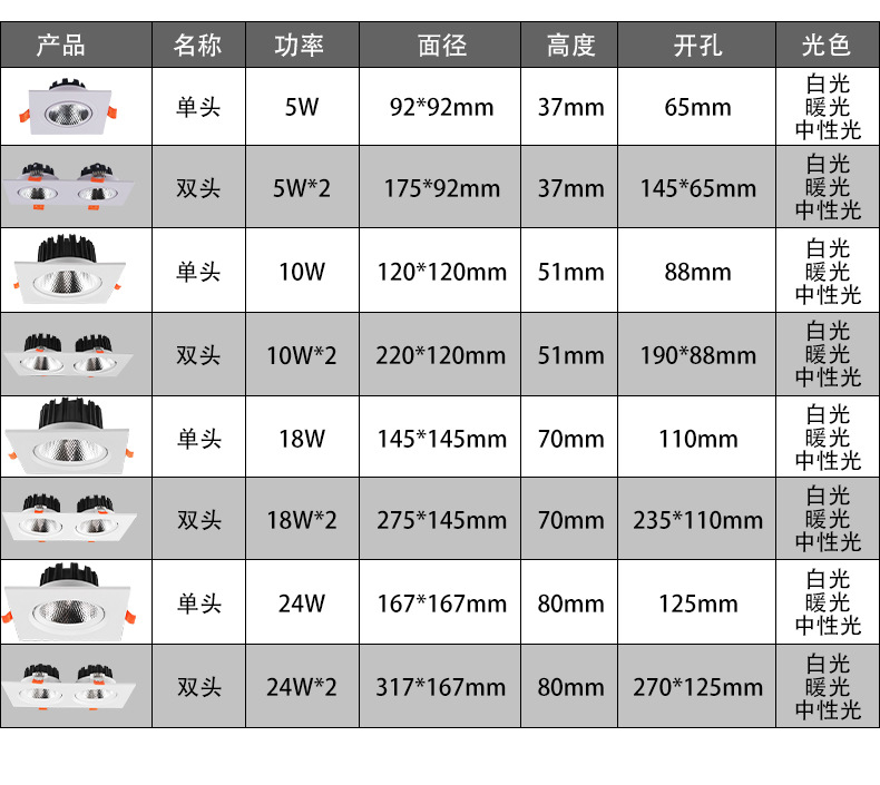 ![]() | [aluminum surface] single head 10w opening 88mm, three-year warranty | Neutral light 4000k | ¥15.87 / ≈ 191 ₽ | 0 | 5780312524461 | |