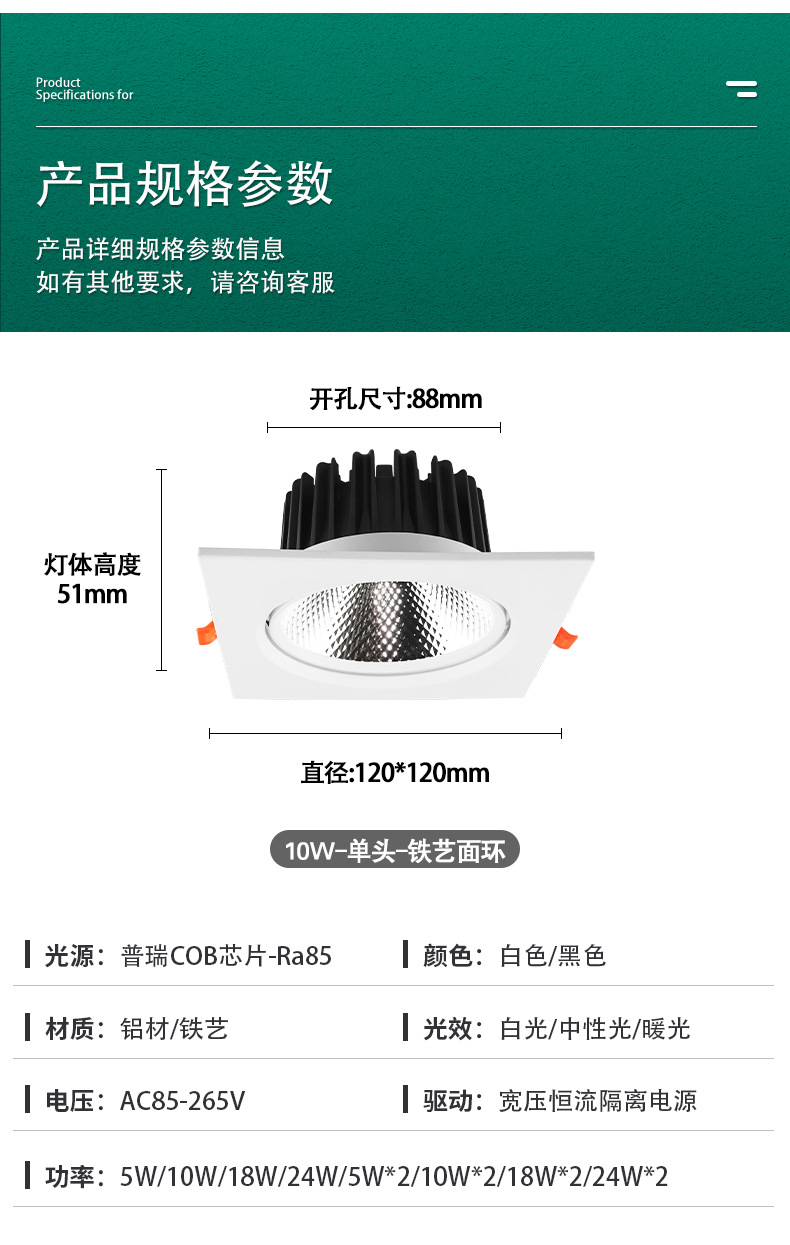 ![]() | [iron surface] single head 10w opening 88mm, two-year warranty | Neutral light 4000k | ¥11.54 / ≈ 139 ₽ | 0 | 5780312524458 | |
