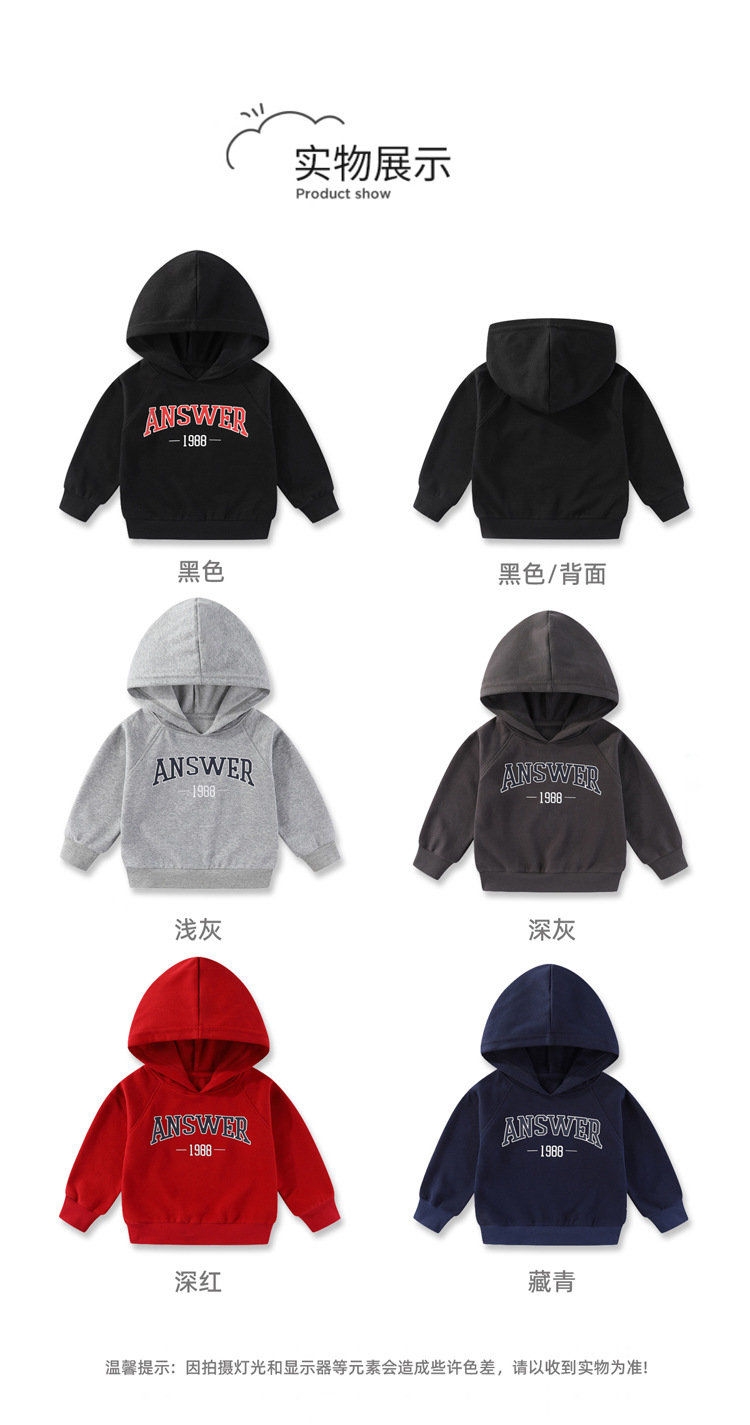 2025 Весной новый стиль для детей 2-8 лет, повседневная толстовка с капюшоном и буквами, модная, свободная и универсальная