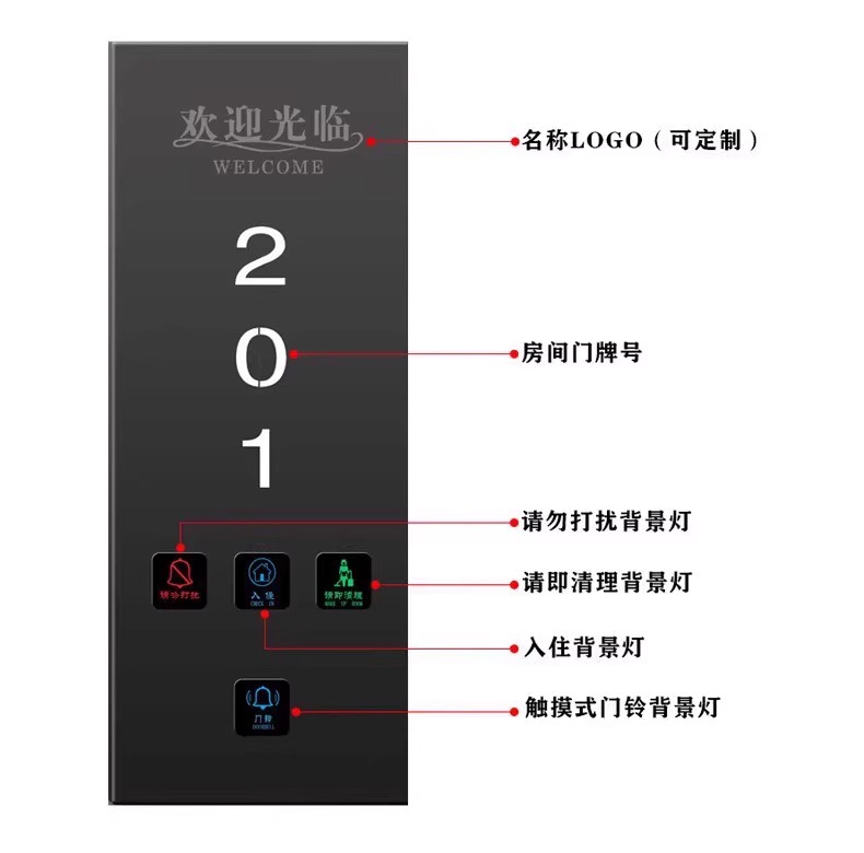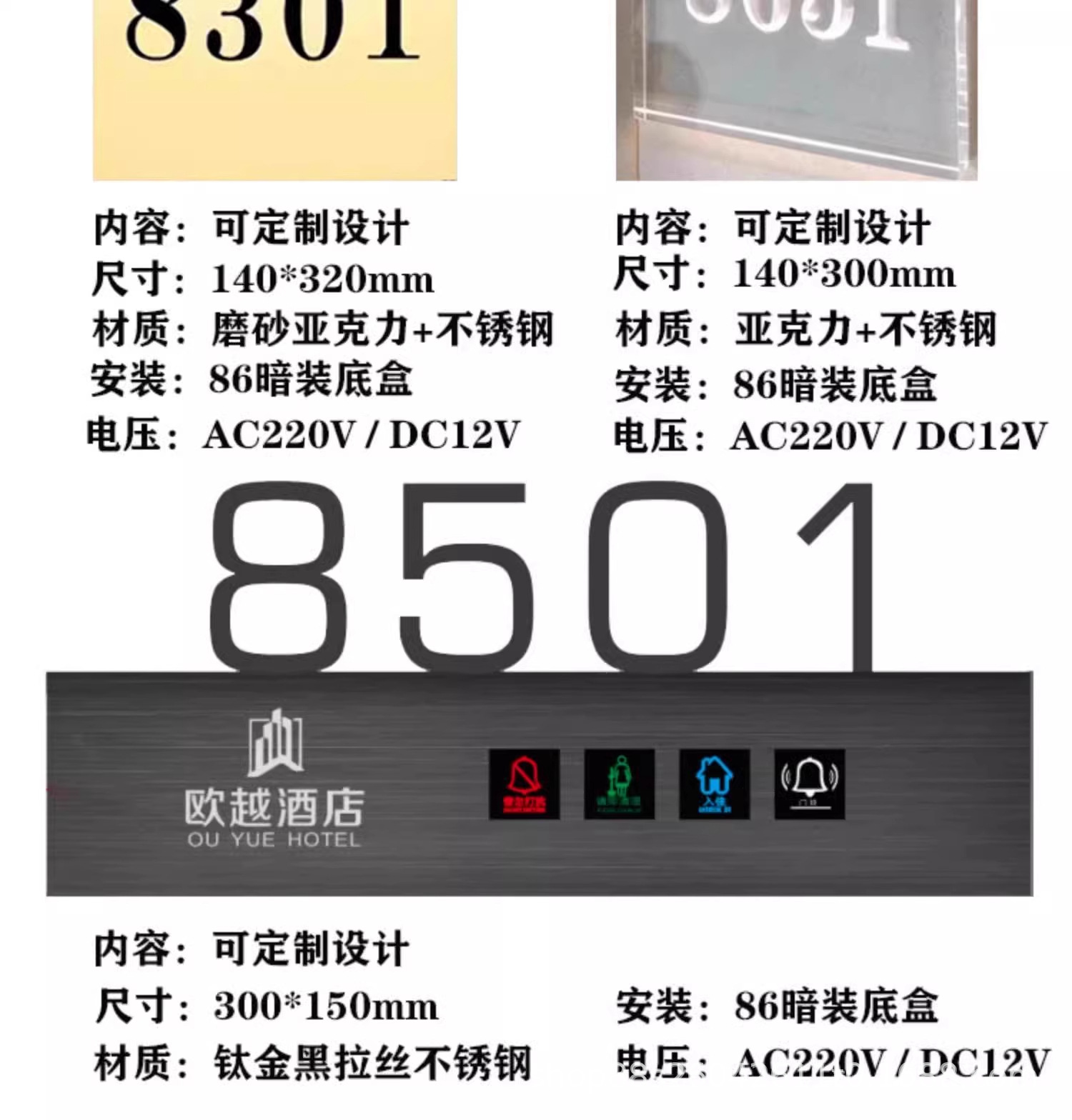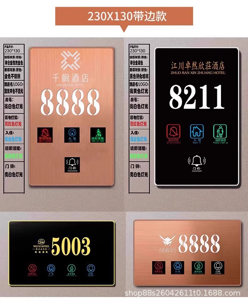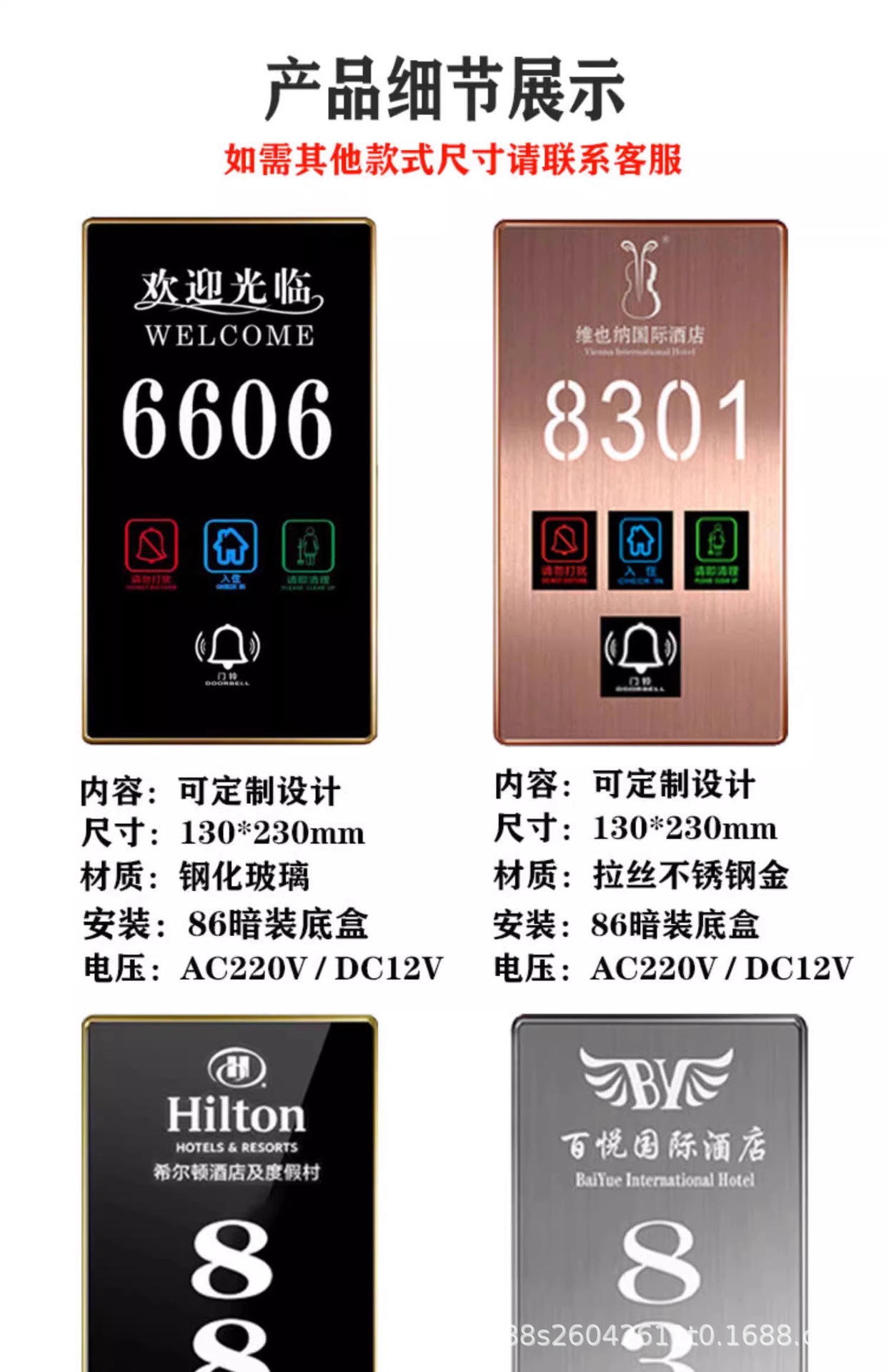 Светящийся цифровой знак двери отеля, знак двери номера, дверной звонок, номер для гостей, производство знака из нержавеющей стали