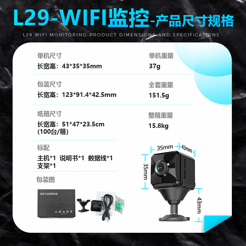 Новая кросс-бодерная электронная коммерция L29 удаленная Wi-Fi камера с высоким разрешением и инфракрасным ночным видением, 180-градусный широкий угол обзора