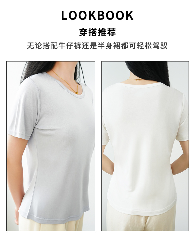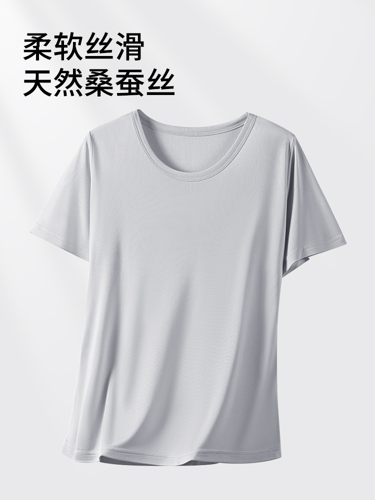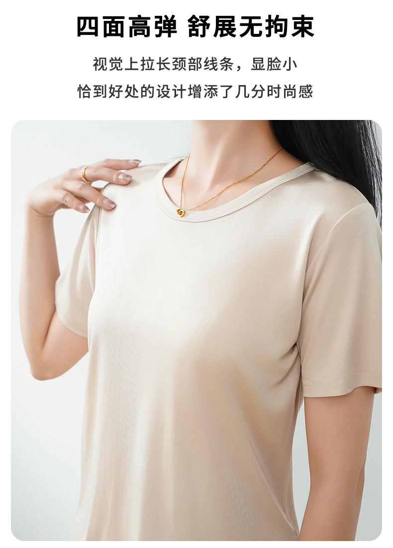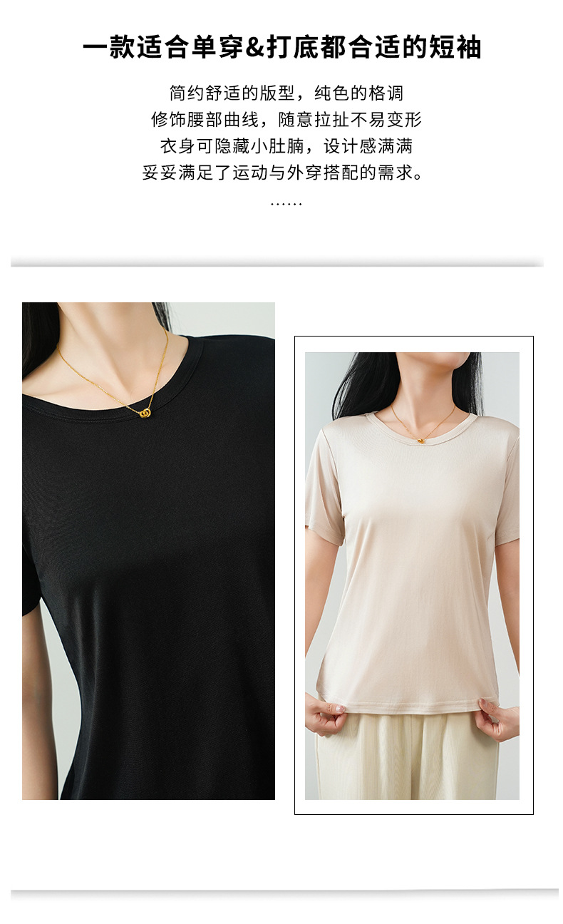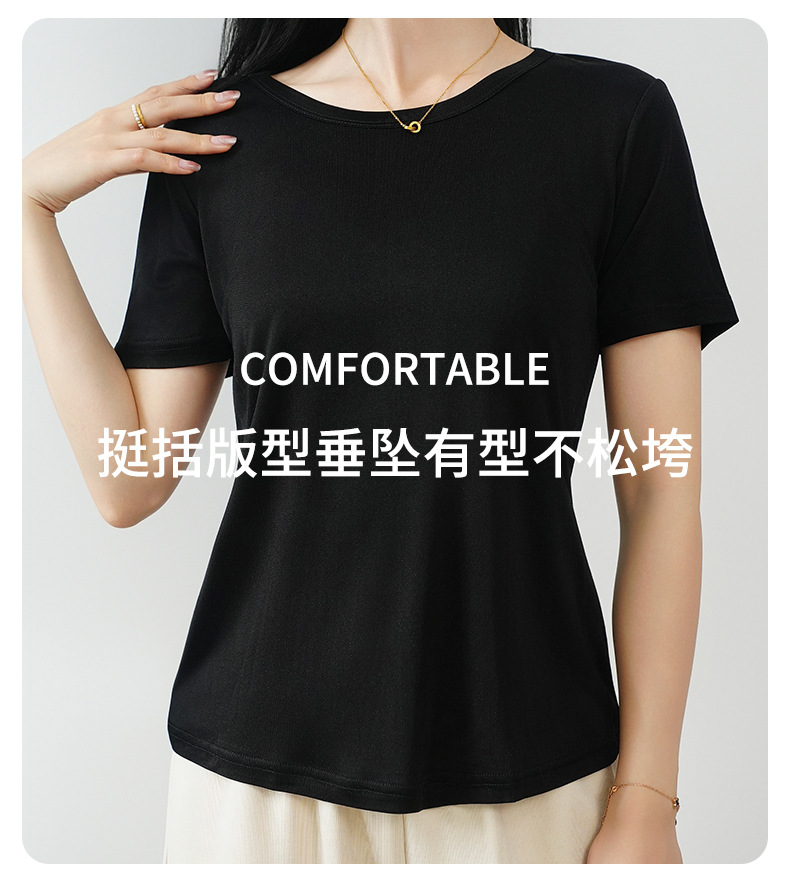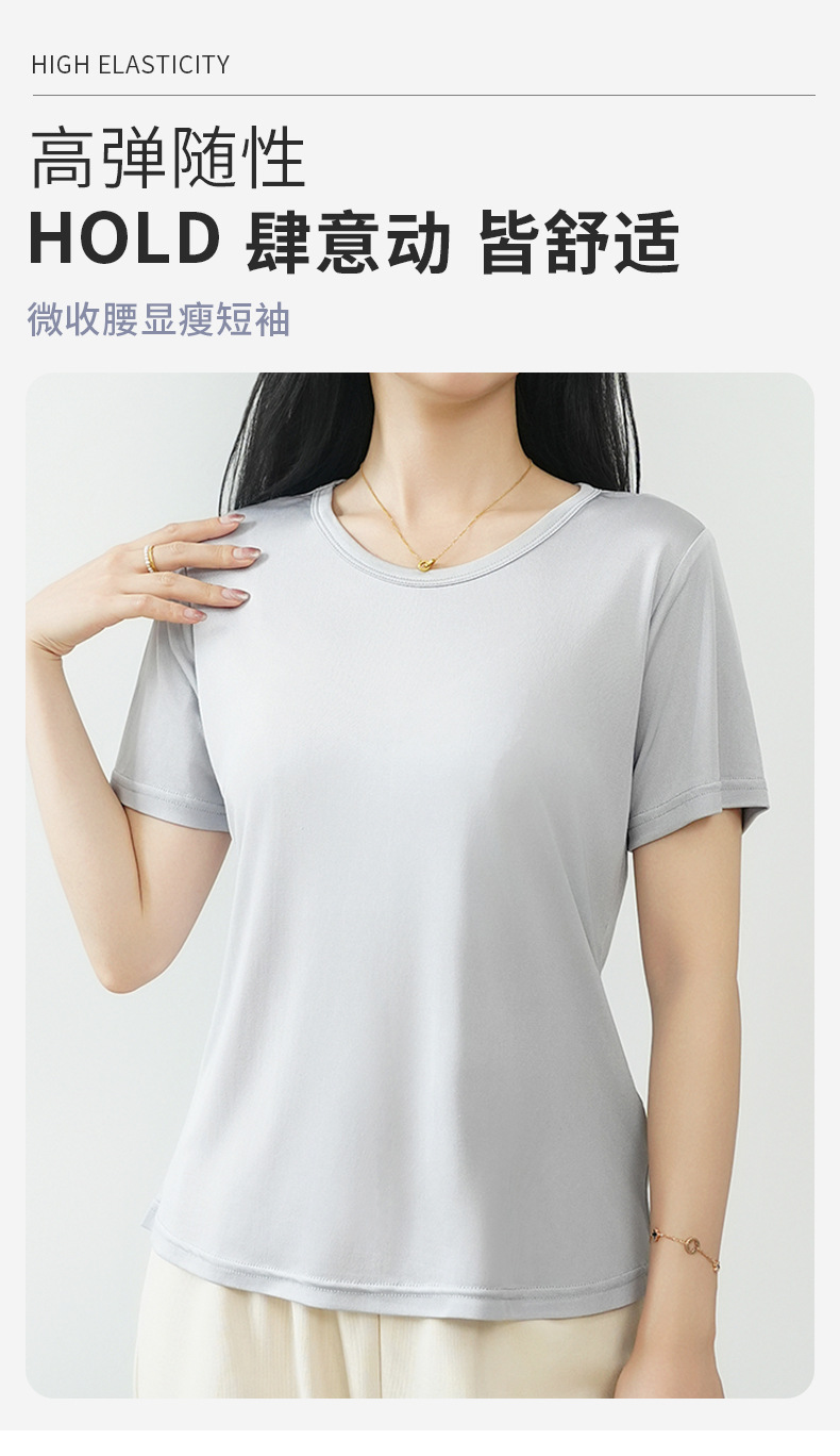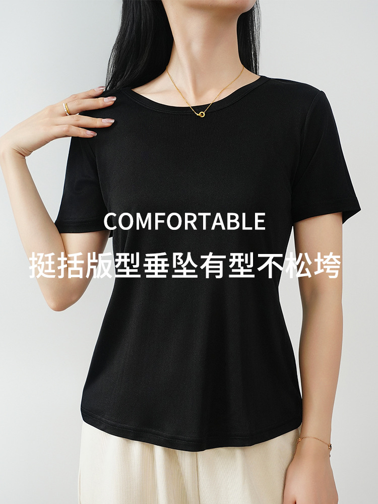 Футболка с коротким рукавом двойной вязки из шелка Tangge с круглым вырезом из шелка тутового дерева облегающая мягкая женская базовая топ
