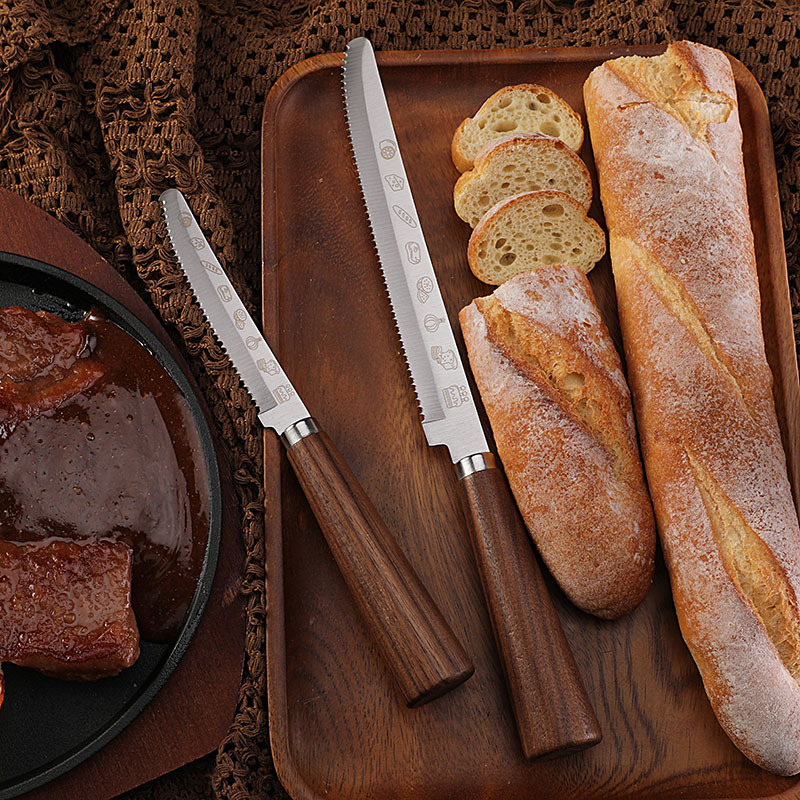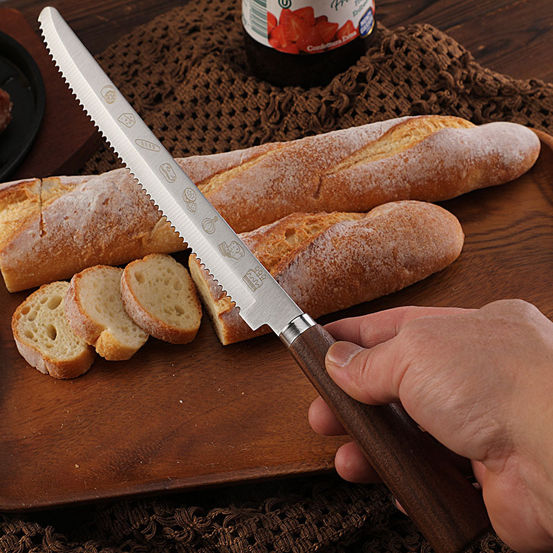 Нож для хлеба с зубчатым лезвием, резак для багетов с ореховой ручкой, кухонный инструмент для выпечки и нарезки тостов