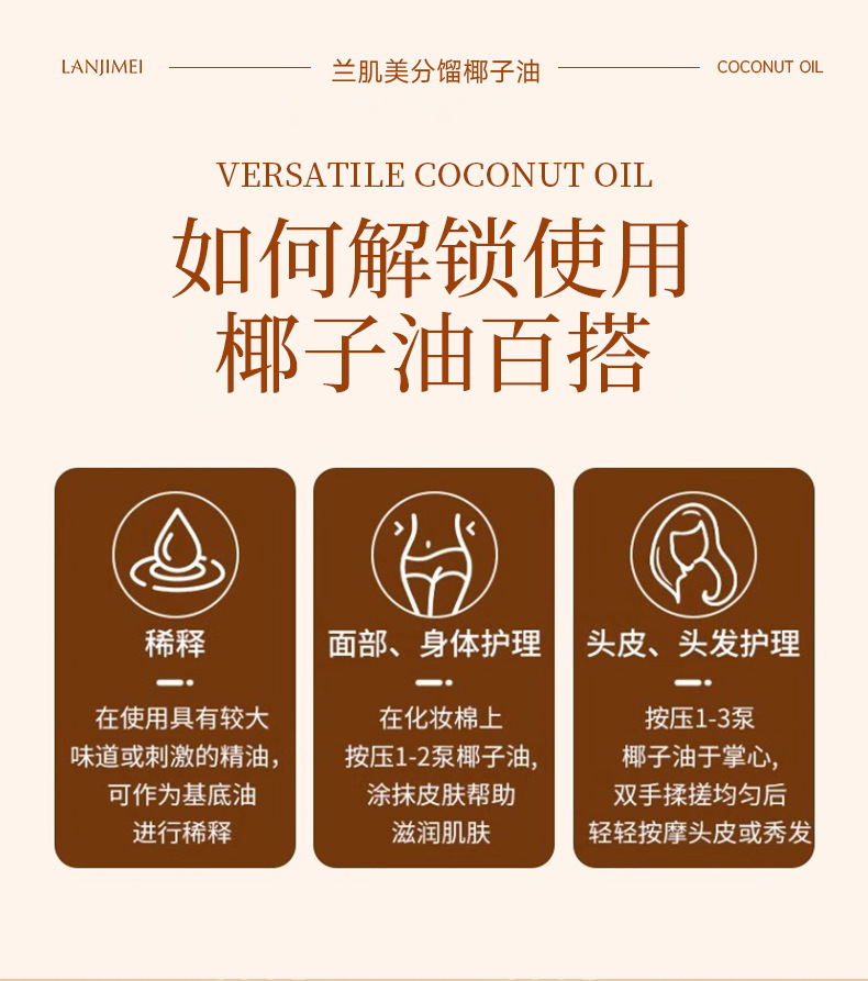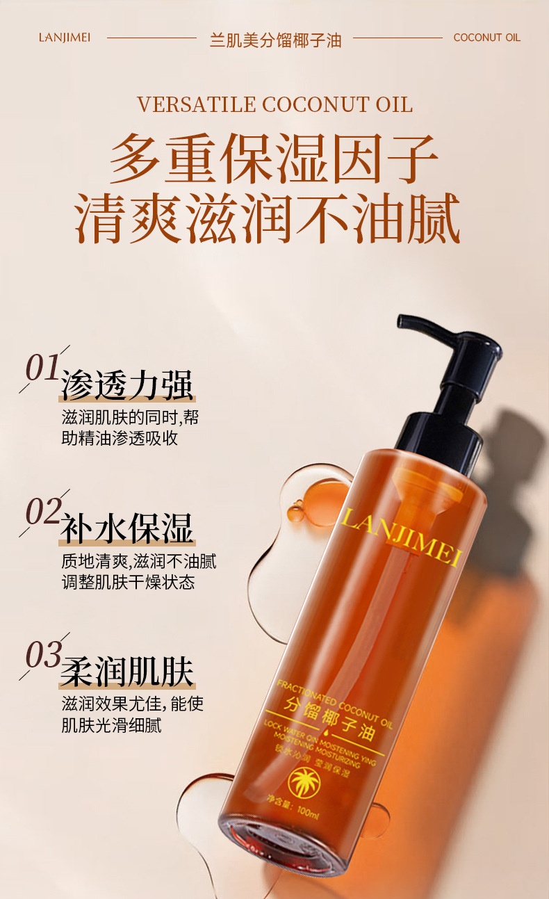 Фракционное кокосовое масло Lanjimei, увлажняющее и питающее кожу, бутылка многофункционального эфирного масла для ухода за лицом и телом