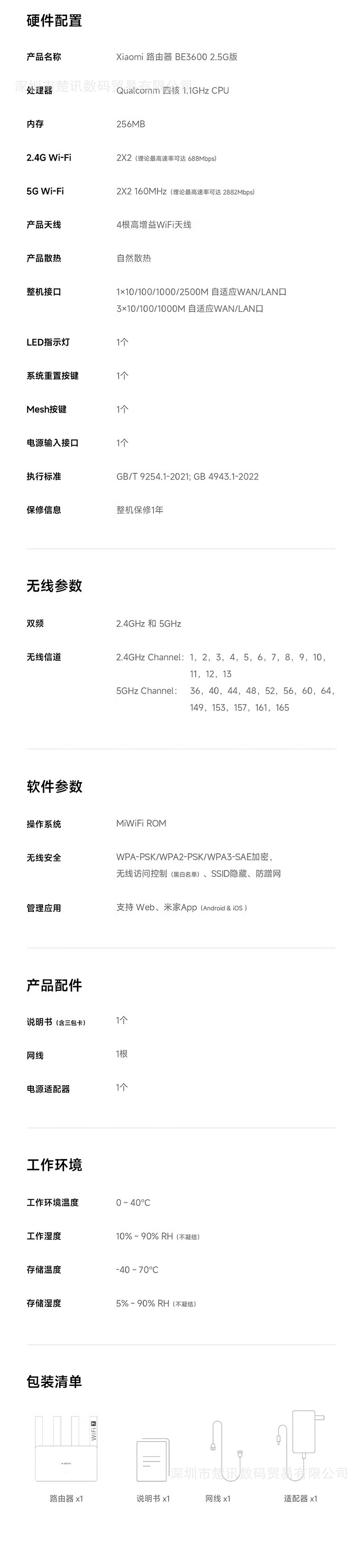 Подходит для маршрутизатора Mijia Xiaomi, сквозной Wifi7Be36002.5G, домашний высокоскоростной маршрутизатор с 4-ядерным процессором