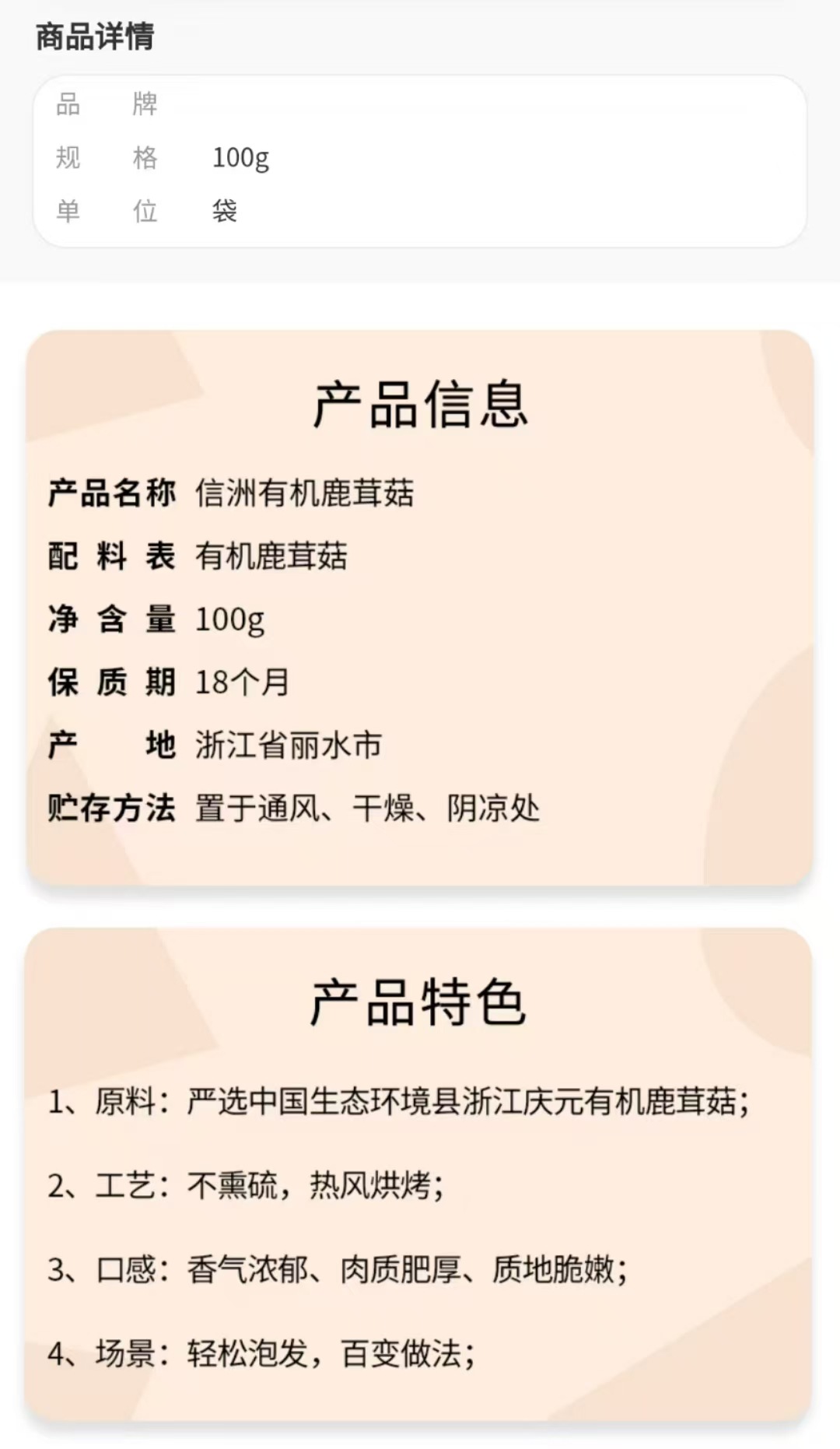 ![]() | Organic deer antler mushroom 100g*1 bag | ¥29.8 / ≈ 359 ₽ | 100 | 5948414907401 |