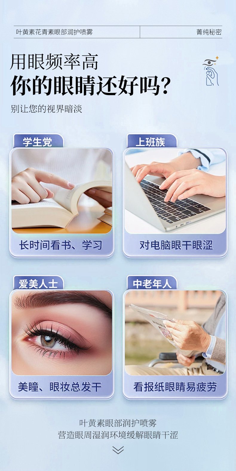 Спрей для ухода за глазами Jingchun Secret Lutein с салициловой кислотой, улучшает уход за глазами с лютеином, доставка от производителя