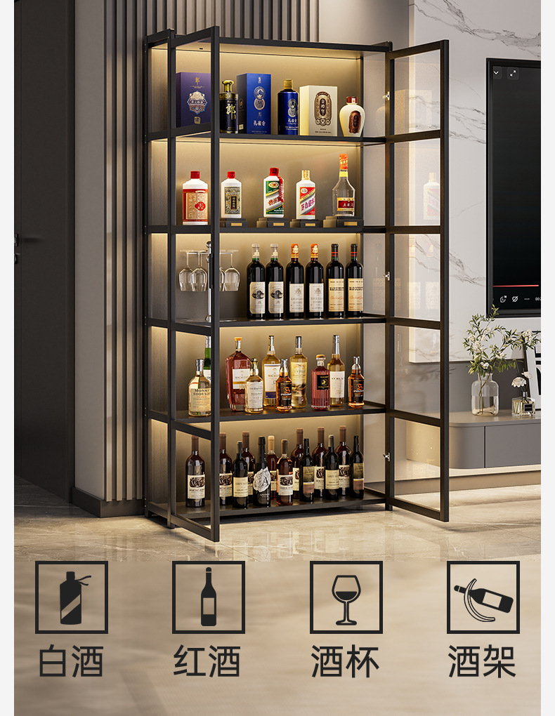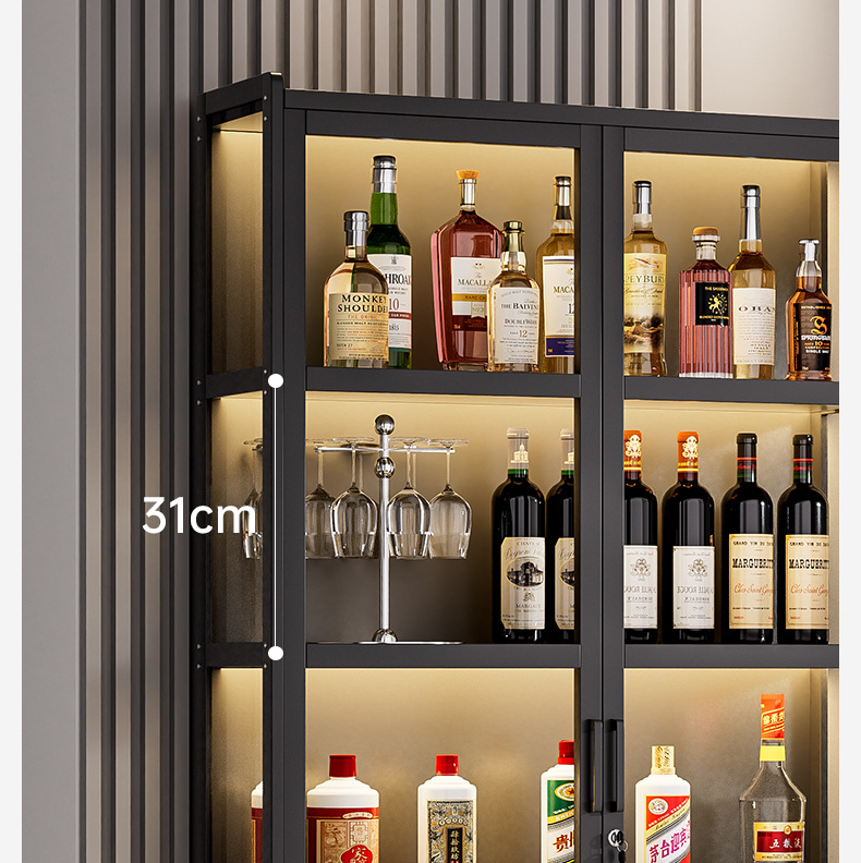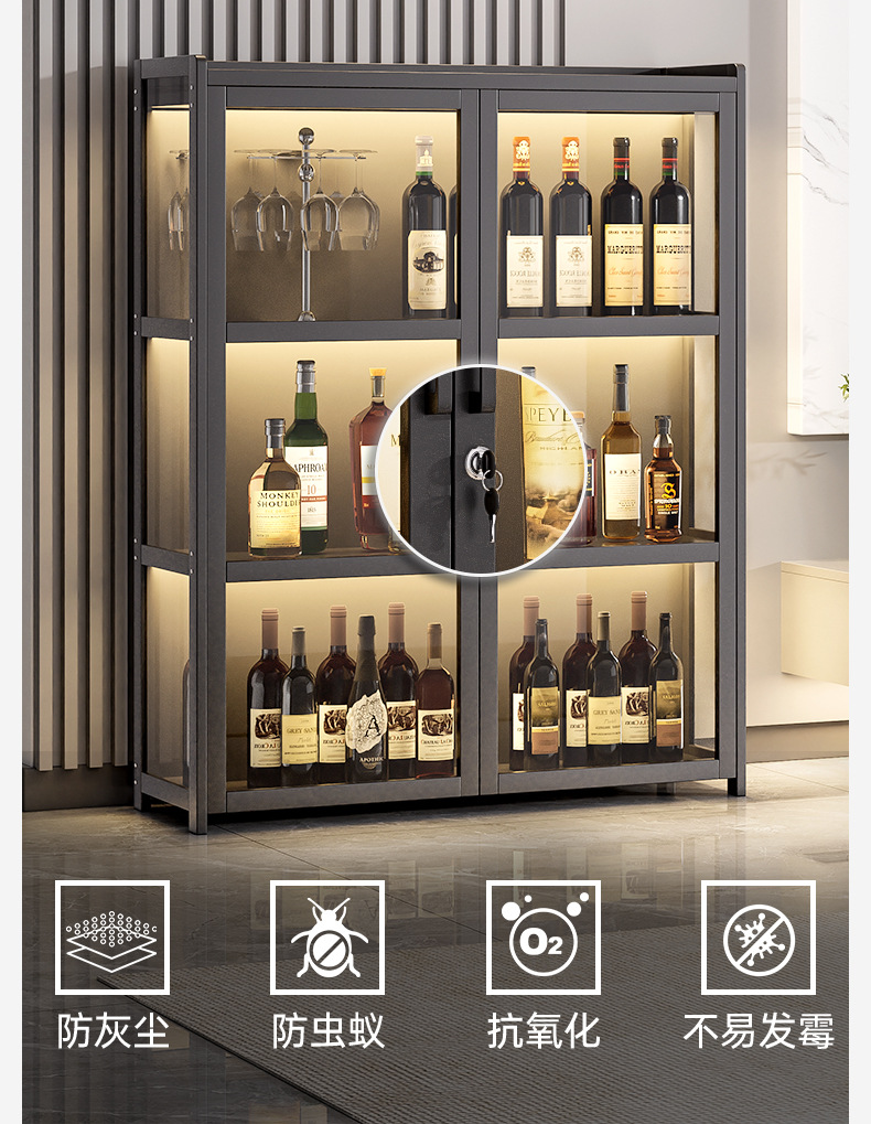 Шкаф для вина для гостиной, напольный, с замком, интегрированный шкаф у стены с встроенной световой панелью