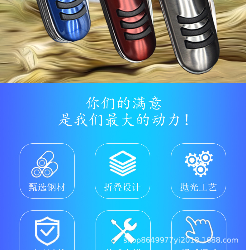 ![]() | Swiss army knife 3 strokes blue 7 open | ¥3.8 / ≈ 46 ₽ | 9999 | 5954565346511 | |