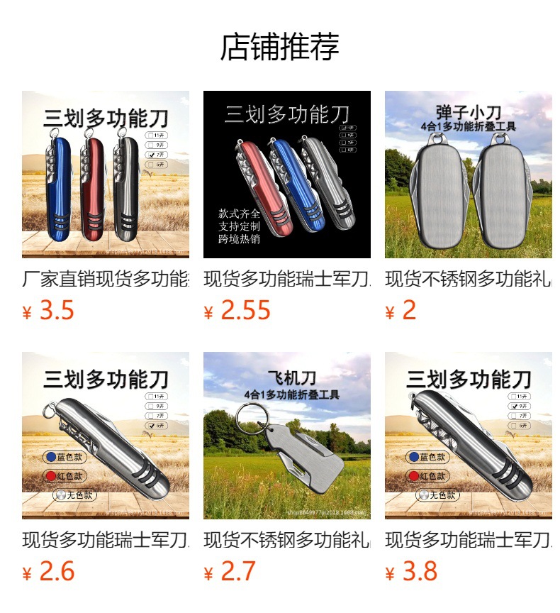 ![]() | Swiss army knife aircraft knife | ¥2.7 / ≈ 33 ₽ | 9998 | 5954565346503 | |