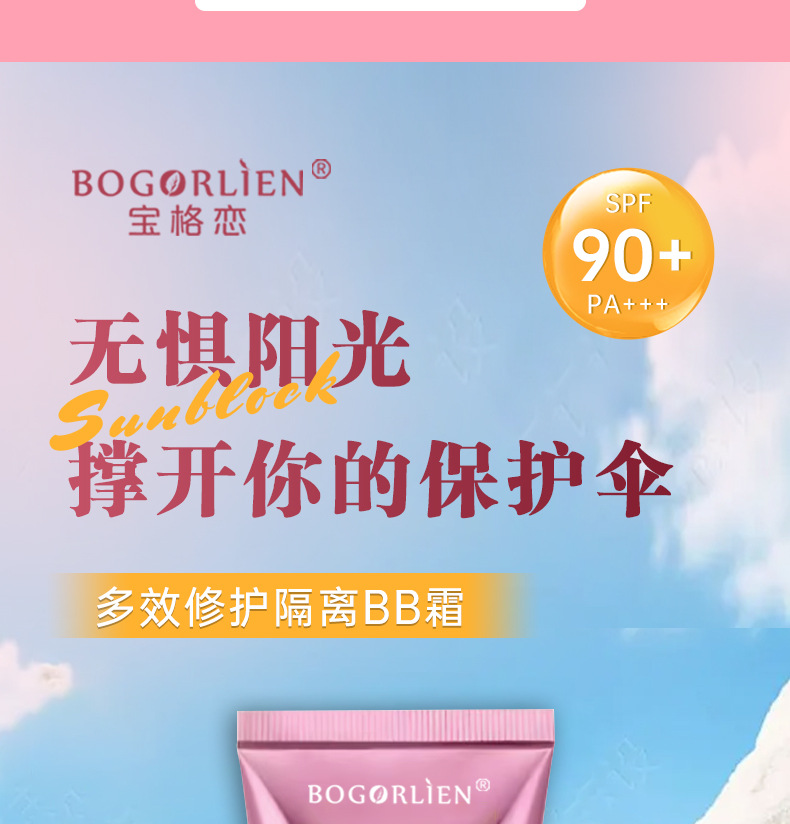 Розовый солнцезащитный крем многофункциональный восстанавливающий изолирующий BB крем SPF50+ + консилер для контроля масла OEM/ODM индивидуальная настройка