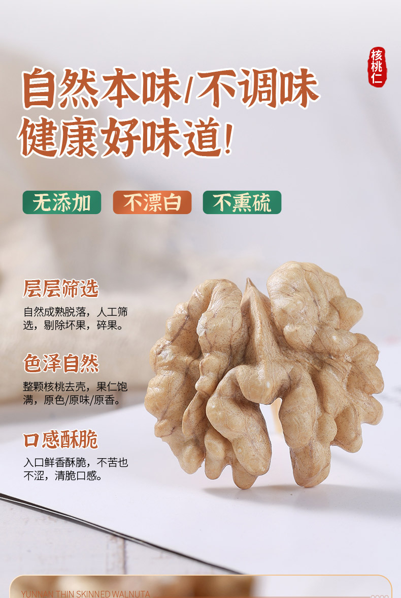 Ядра грецкого ореха 2025 Новый оптовый дропшиппинг для беременных женщин, ореховые закуски, запеченные оригинальные ядра грецкого ореха из Юньнани