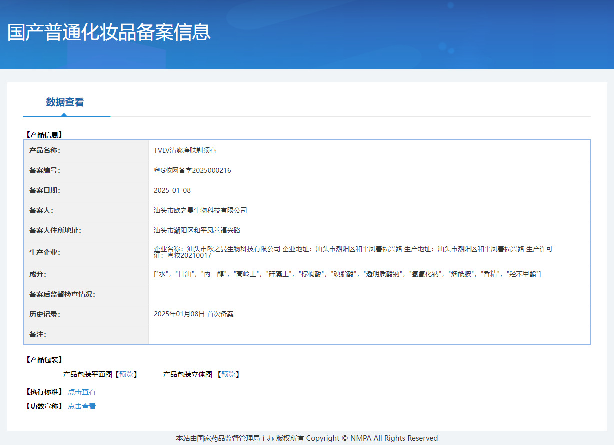 Номер сертификата регистрации несpecial косметики Guangdong g makeup network preparation number 2025000216