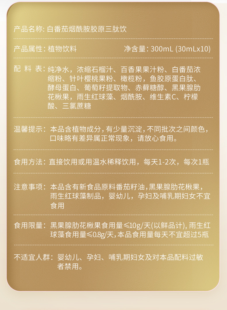 Напиток с ниацинамидом и коллагеном трипептидным из белого томата, жидкость для приема внутрь, ОЕМ