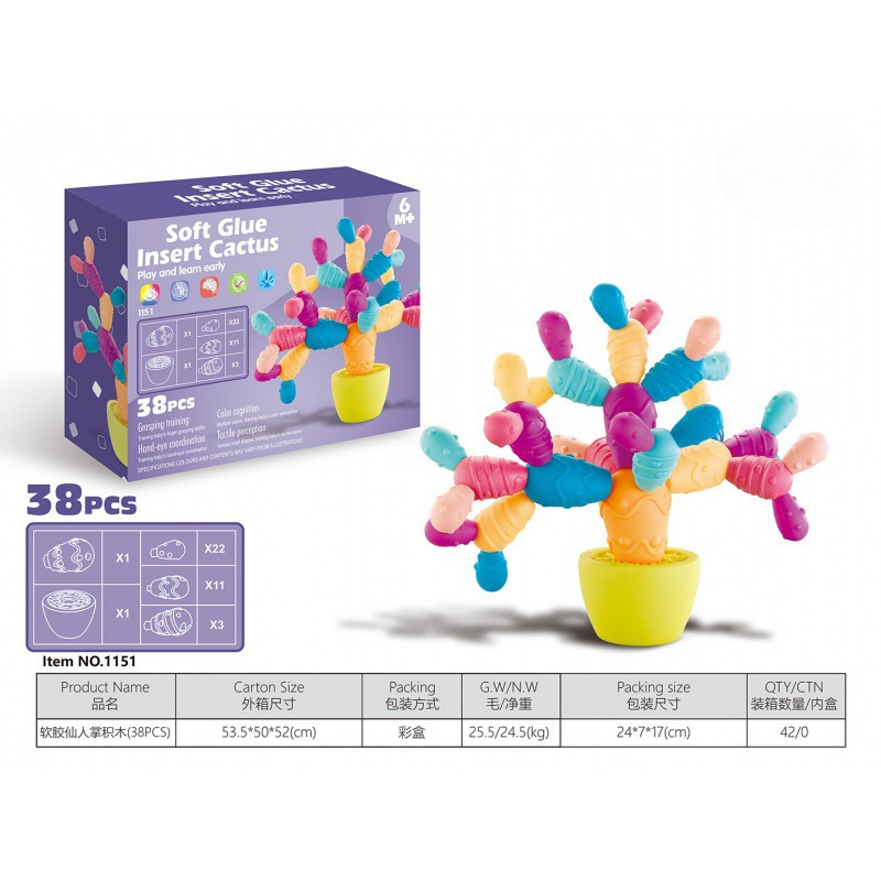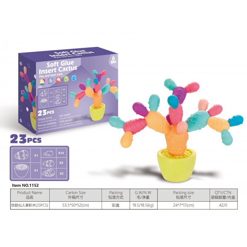 Кросс-бордерные игрушки для сборки для младенцев и малышей, когнитивные мягкие резиновые кактусы, раннее образование, игра в Дженгу