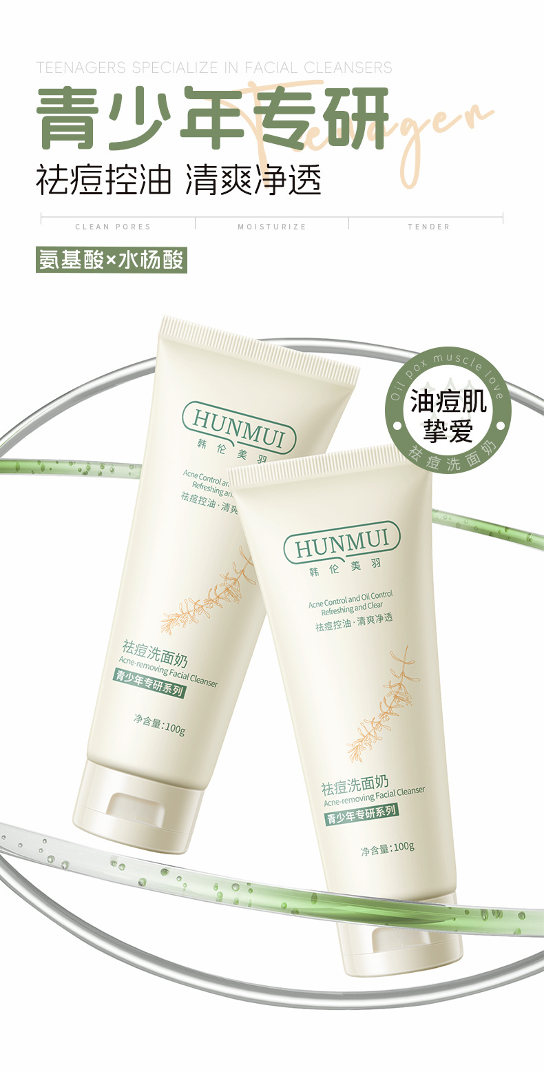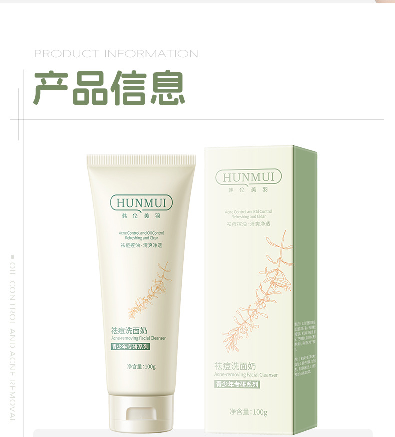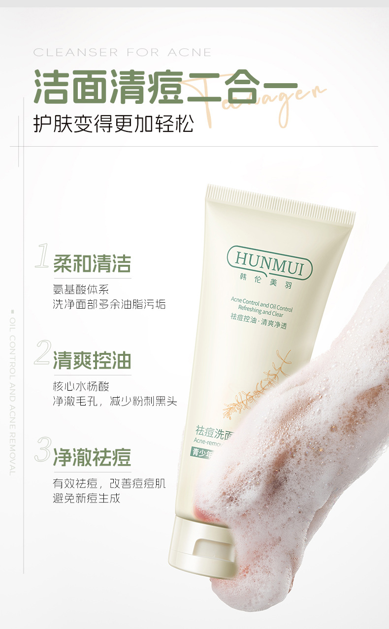 Очищающий гель для лица Han Lun Meiyu Youth, удаляет акне, уменьшает следы акне, контроль масла, очищающий гель для студентов