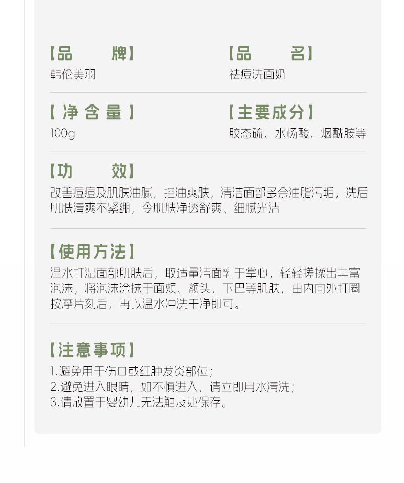 ![]() | Acne cleansing milk [acne treatment and oil control for teenagers] | 100g | 1шт: ¥3.50, 1000шт: ¥3.20, 5000шт: ¥3.00 | 49503 | 5951503687031 |