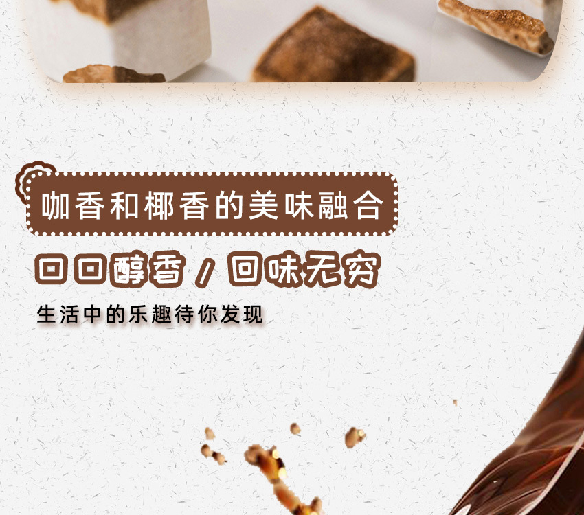 Сырьё и ингредиенты Coconut meat, white sugar, crystalline trehalose, flavored yogurt, pure coconut powder, skimmed milk powder, instant coffee powder