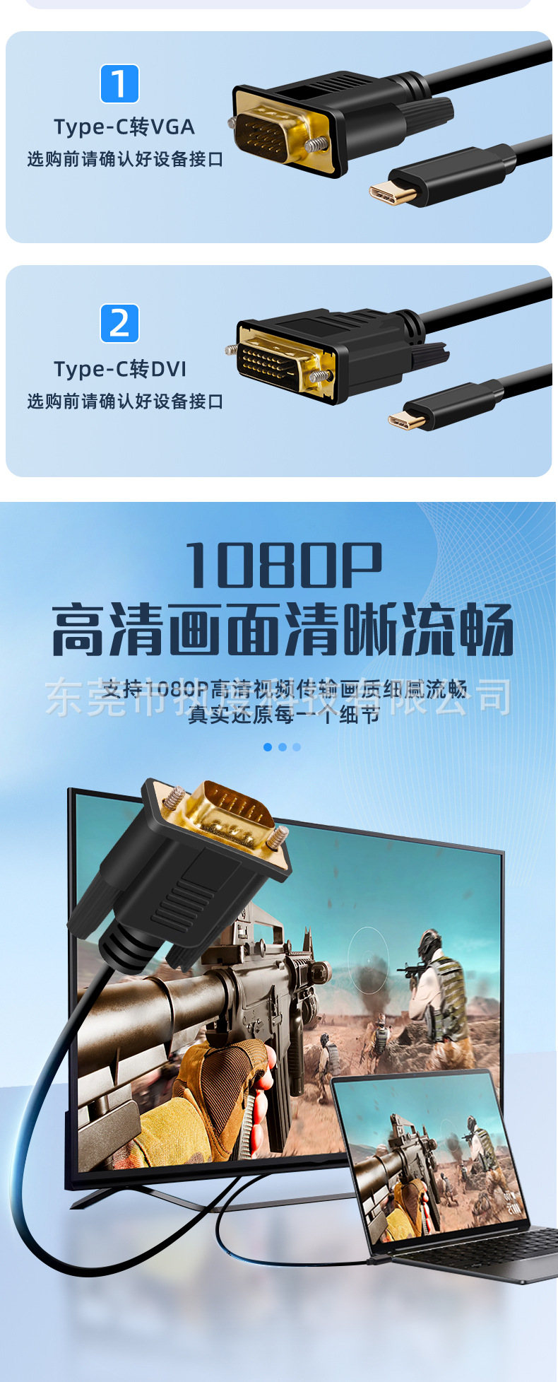 Преобразователь Type-C to VGA 1080P, USB-C to DVI для ноутбуков и мобильных телефонов