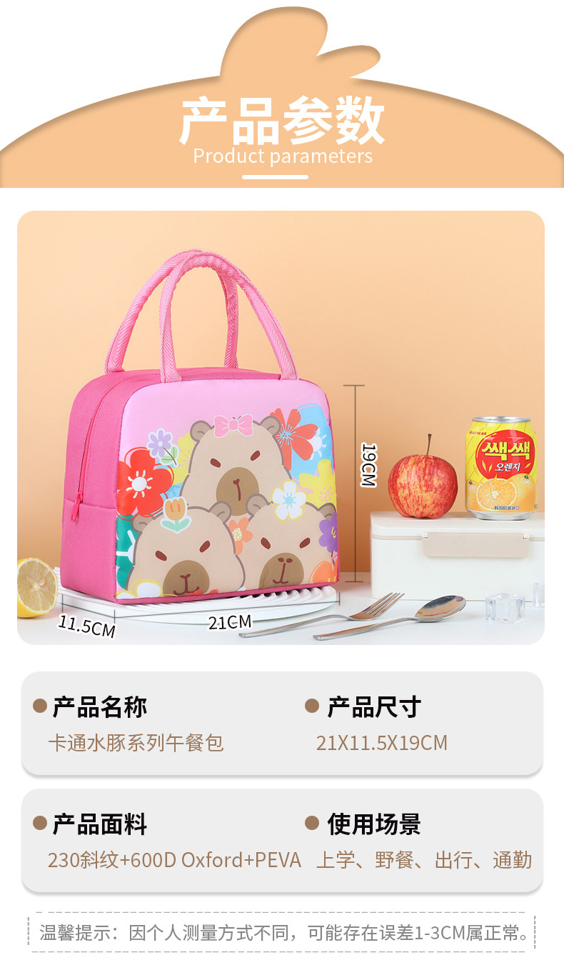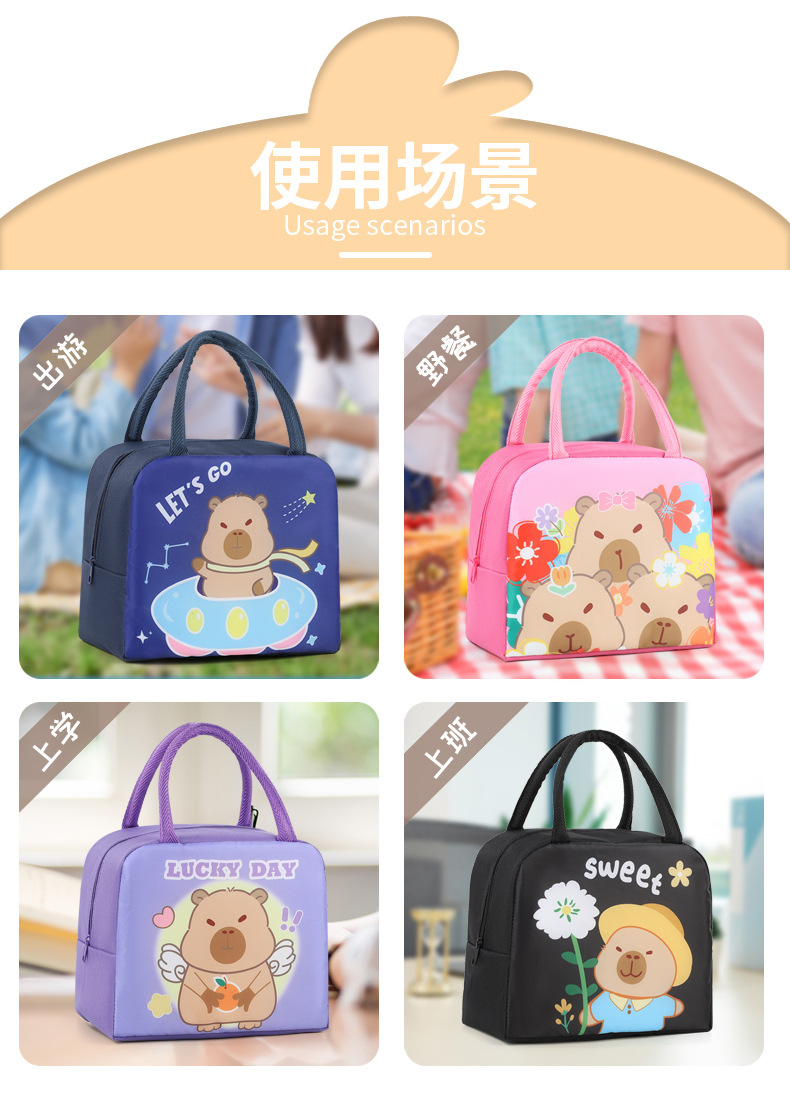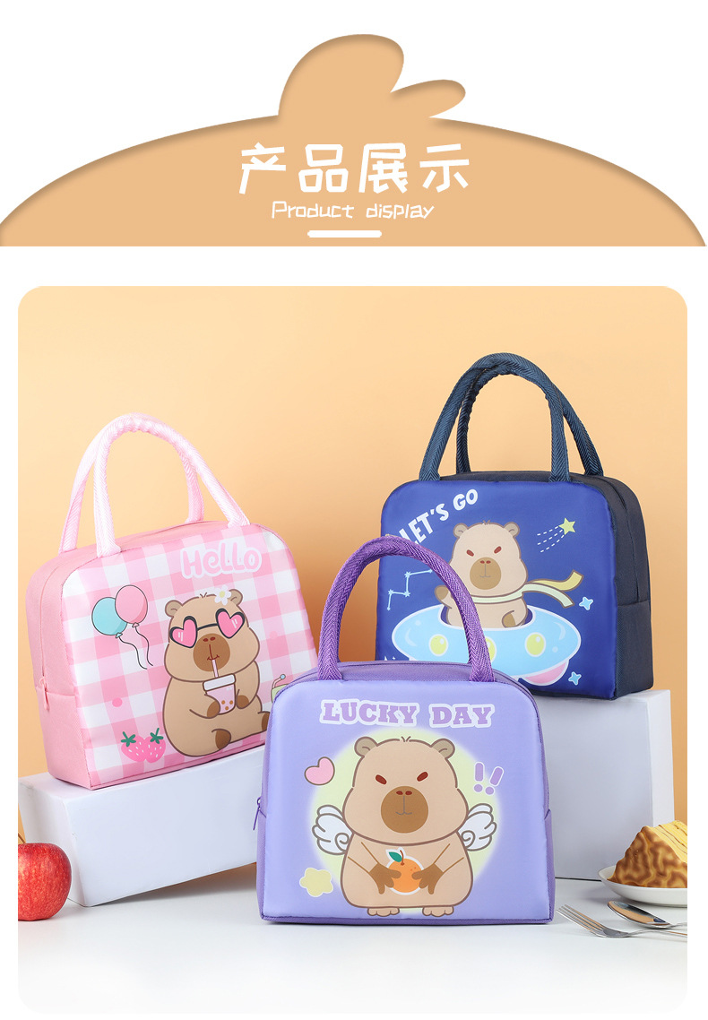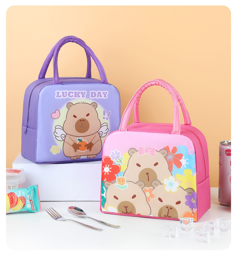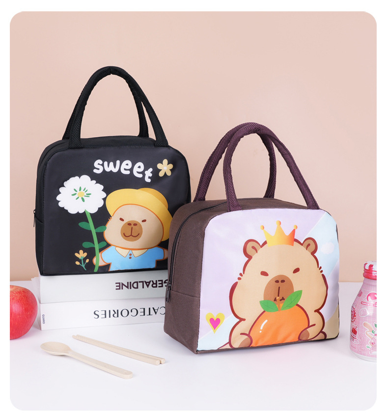 Новая забавная сумка для обеда с мультяшным дизайном капибары для офисных работников, портативная сумка для обеда для детей