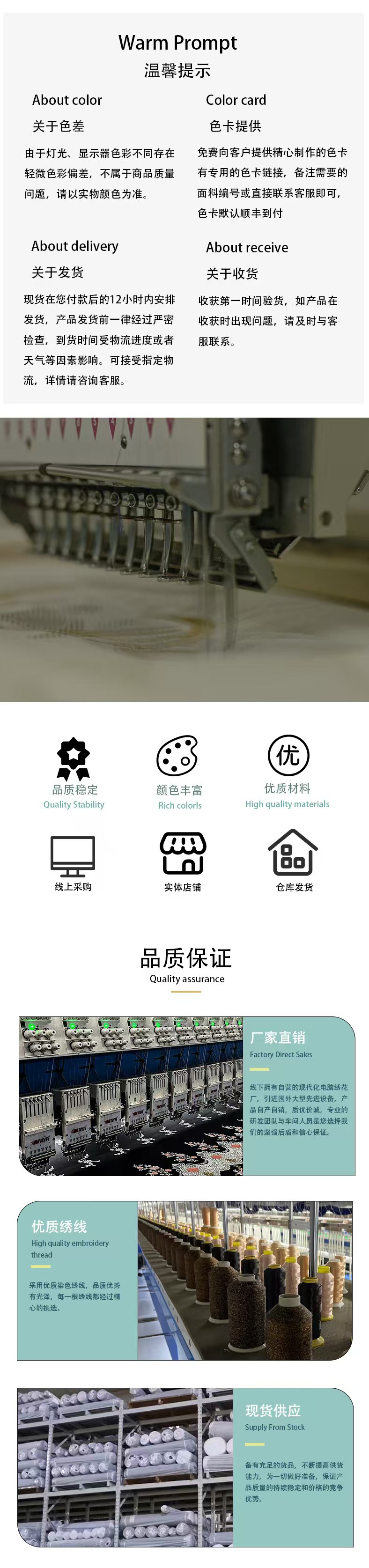 2.源头工厂,现货充足,接受定制;主营珠片面料、珠绣面料、盘带面料、蕾丝花边、棉布刺绣花边、网纱刺绣花边、水溶刺绣花边、网布绣花面料、蕾丝面料。