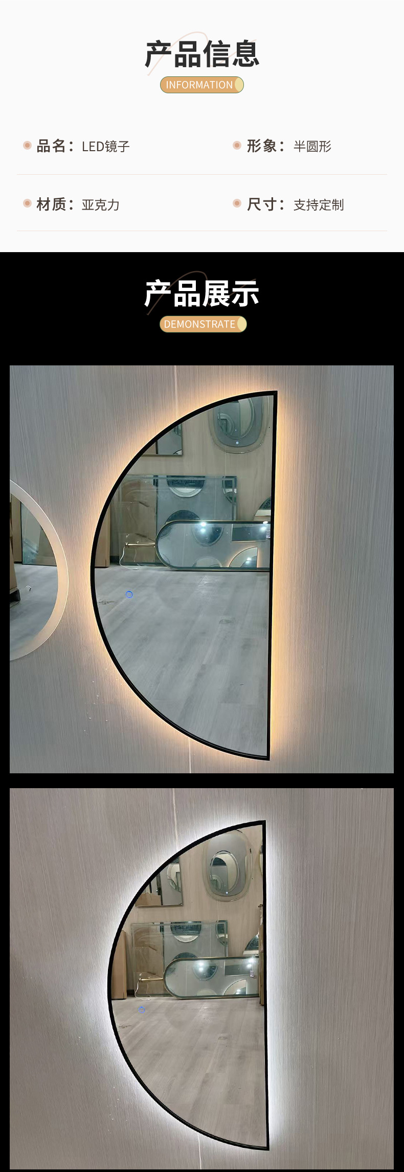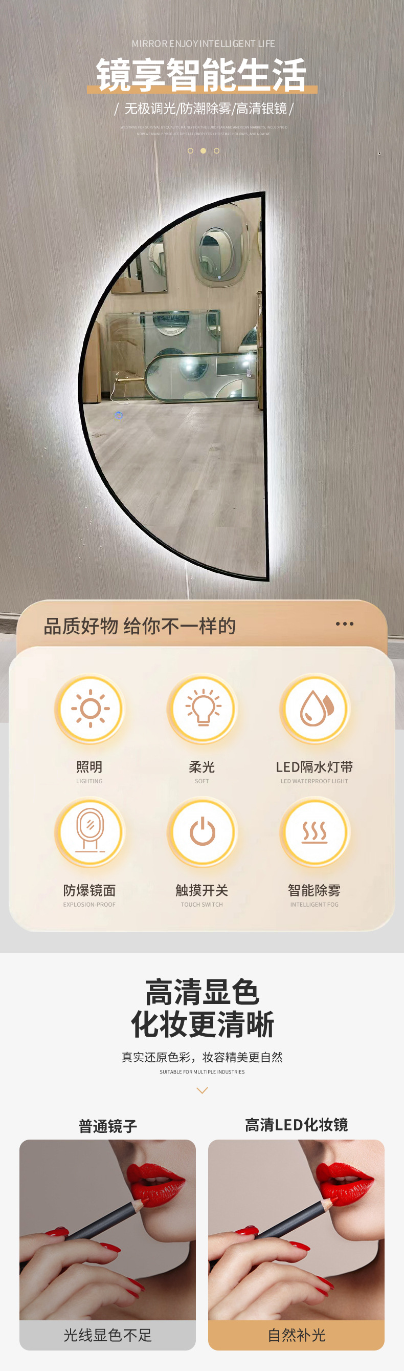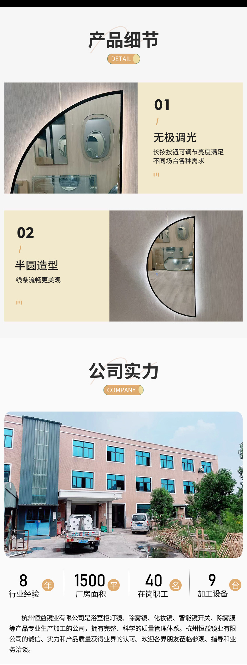 Полукруглый светодиодный свет с зеркалом, настенное зеркало с рамкой, полукруглое зеркало с сенсором, антизапотевающее смарт-зеркало