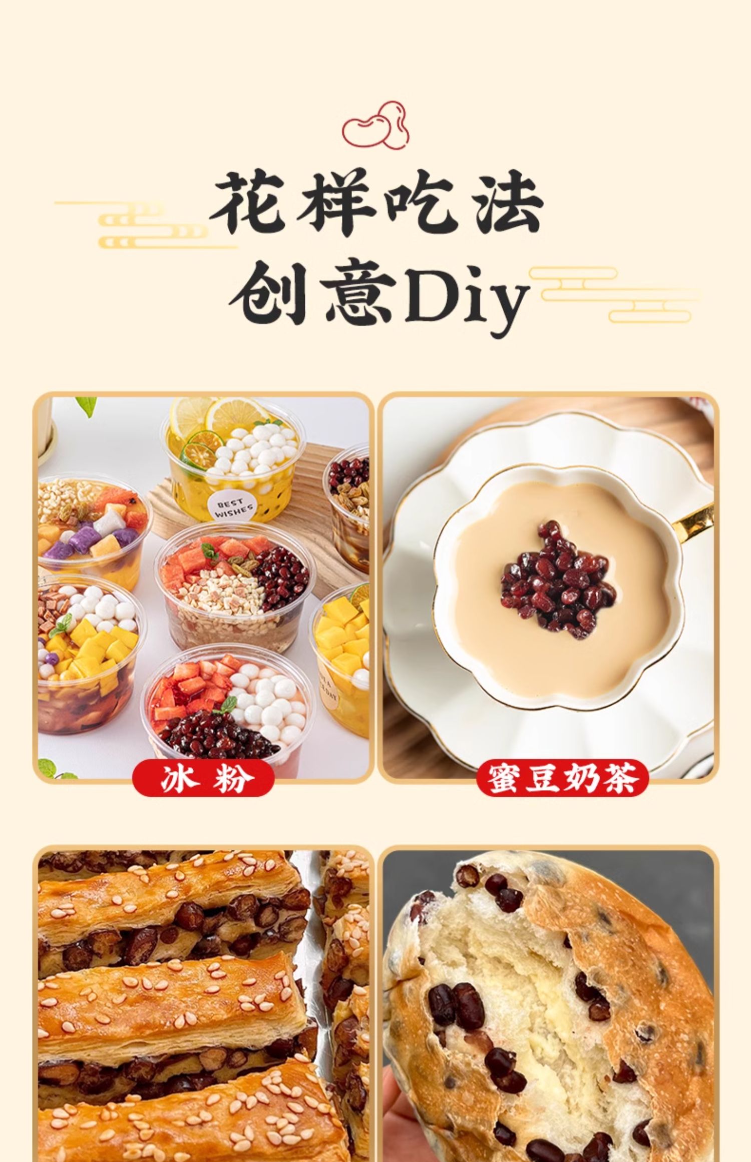 Мелассовые бобы, красные адзуки, кондитерские бобы, многоцветные бобы, неварящееся мгновенное молочный чай, ингредиенты для выпечки