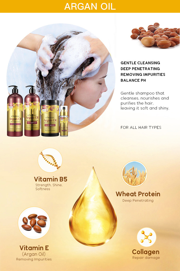 Шампунь KORMESIC с аргановым маслом, полный набор для ухода за волосами, оптовая продажа