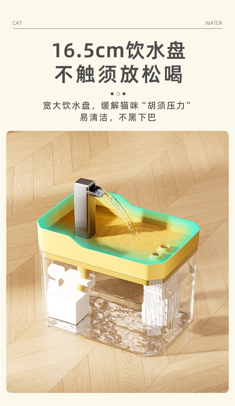 本产品需一直插电使用,相比外置锂电池类型的饮水器续航更久 更稳定,也无需每天更换充电宝/锂电池。