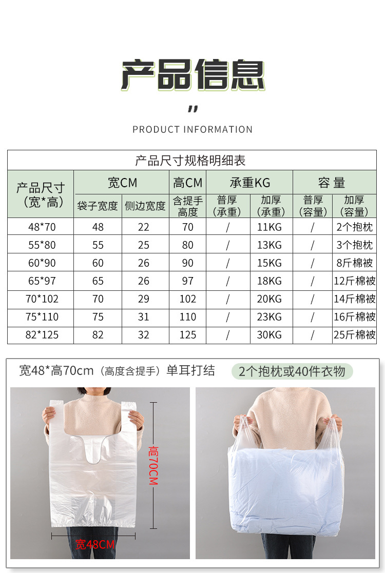 产品用途:适用于搬家打包,家庭收纳整理,行李打包,可用于服装批发场,蔬菜批发打包,手工外发打包等!