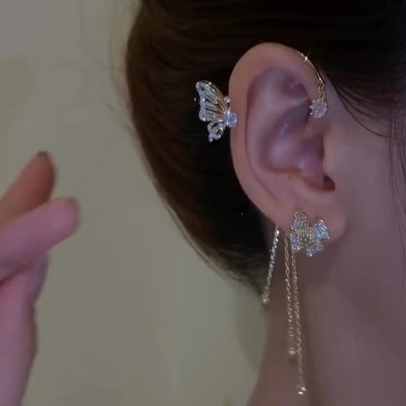 Новые клипсы для ушей с кисточками, украшенные бриллиантами, элегантные серьги в виде бабочки без прокола уха, стиль Tiktok