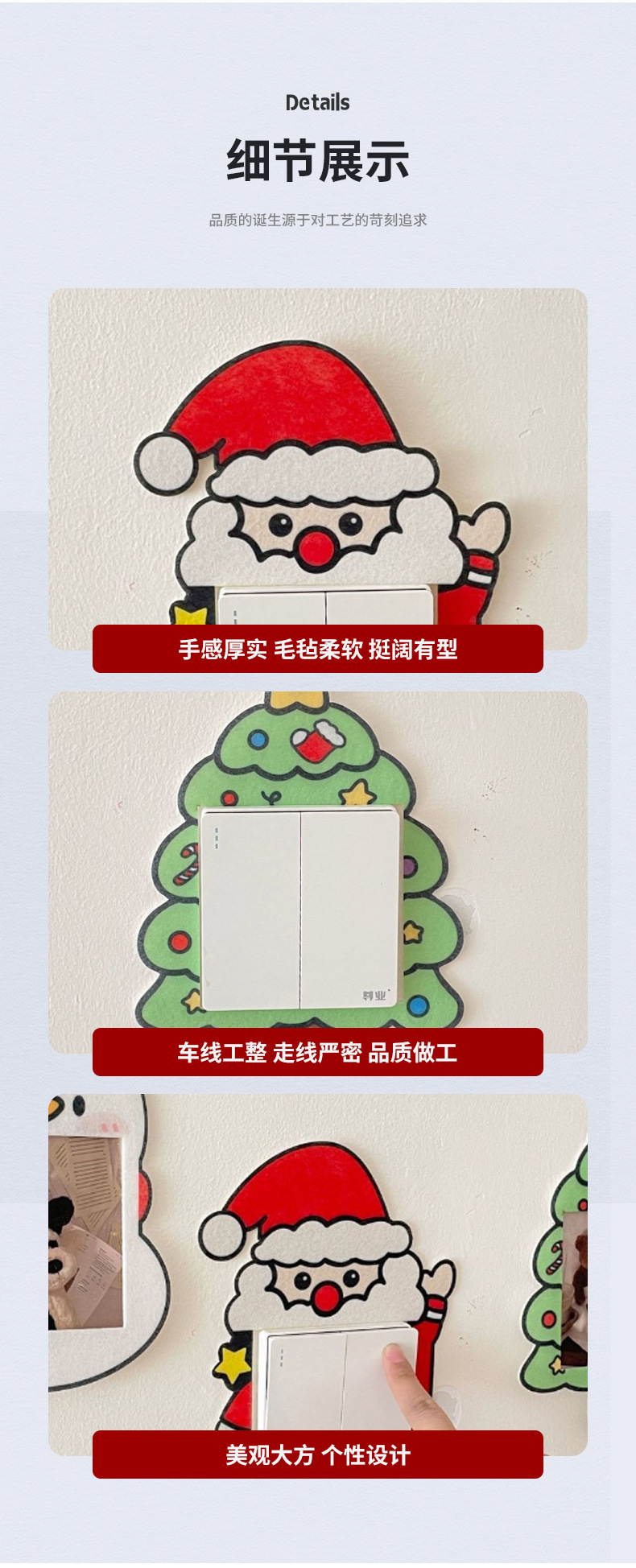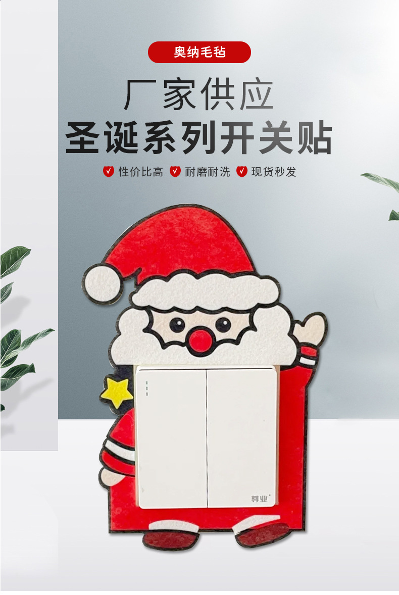 Оптовая наклейка на выключатель Санта-Клауса и оленя из фетра, мультяшный милый рождественский декор, накладка из фетра