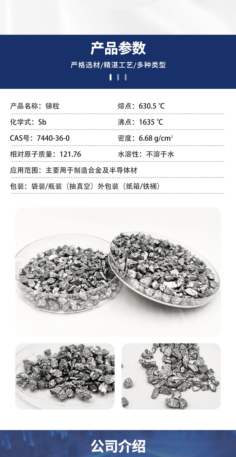 Частицы сурьмы высокой чистоты 4-7N 1-6мм неправильной формы для научных исследований, полупроводниковое использование, частицы сурьмы для научных исследований