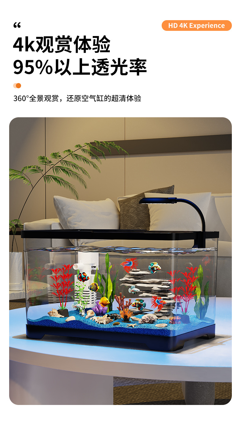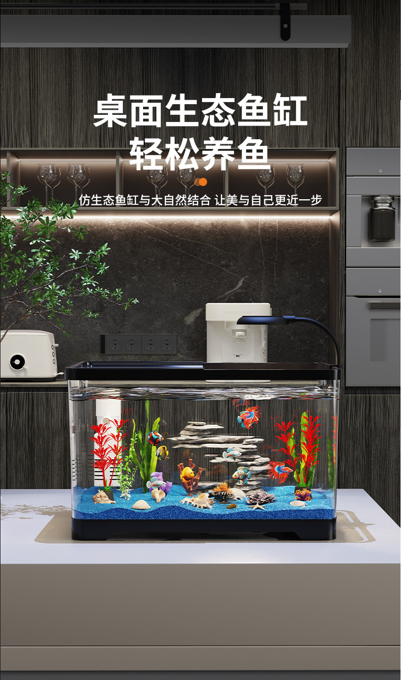 Аквариум маленький для гостиной 2025 новый стиль домашний ландшафт полный комплект экологический аквариум с крышкой прозрачный настольный аквариум