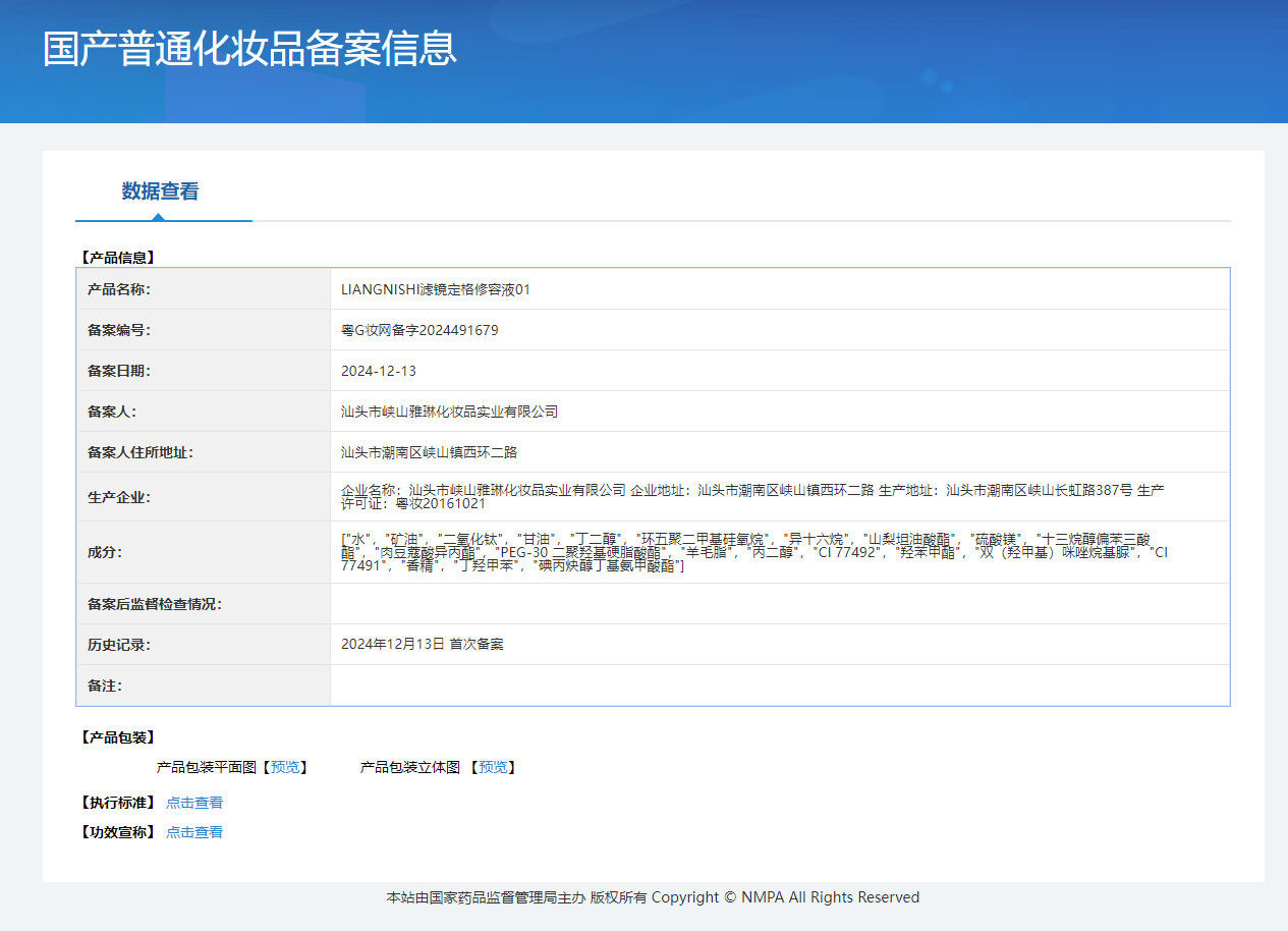 Номер сертификата регистрации несpecial косметики Guangdong g makeup network preparation number 2024456362