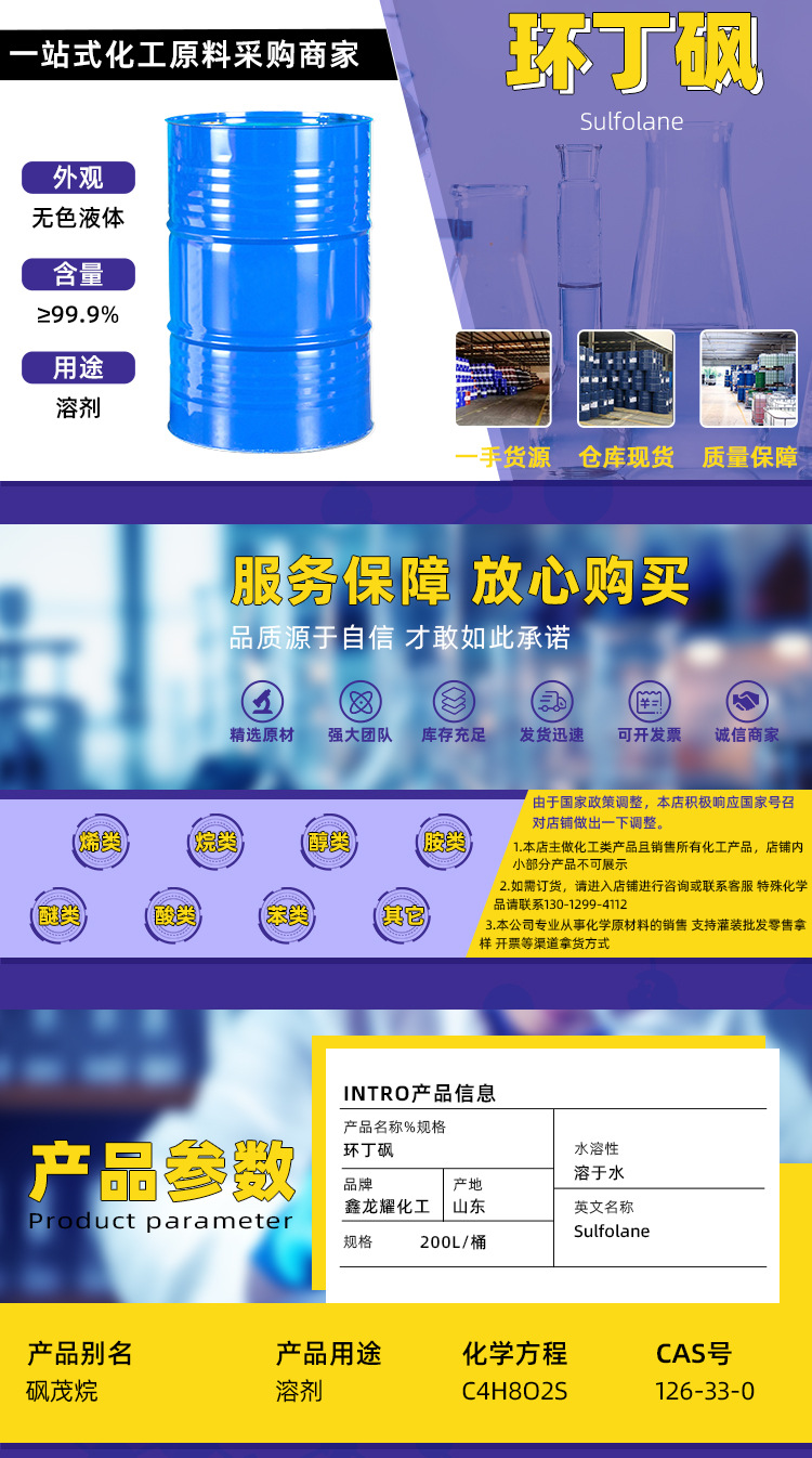 Сульфон кольцевого бутана в наличии, тетрагидротииофенолсульфон, универсальный растворитель, высокотемпературный пластикозатор, промышленный класс, сульфон кольцевого бутана