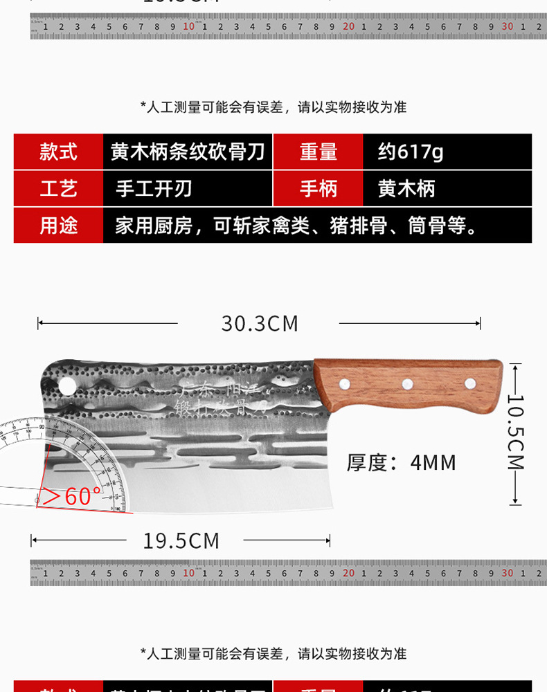 ![]() | Yellow wood handle striped bone chopping knife (4.0mm) | ¥11.5 / ≈ 139 ₽ | 4409 | 5957031563302 | |