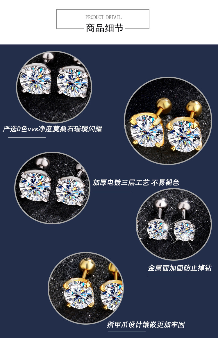 Серьги из серебра S925 с моиссанитом, серьги с четырьмя зажимами, 50 точек, 1 карат, 2 карата, оптовые серьги