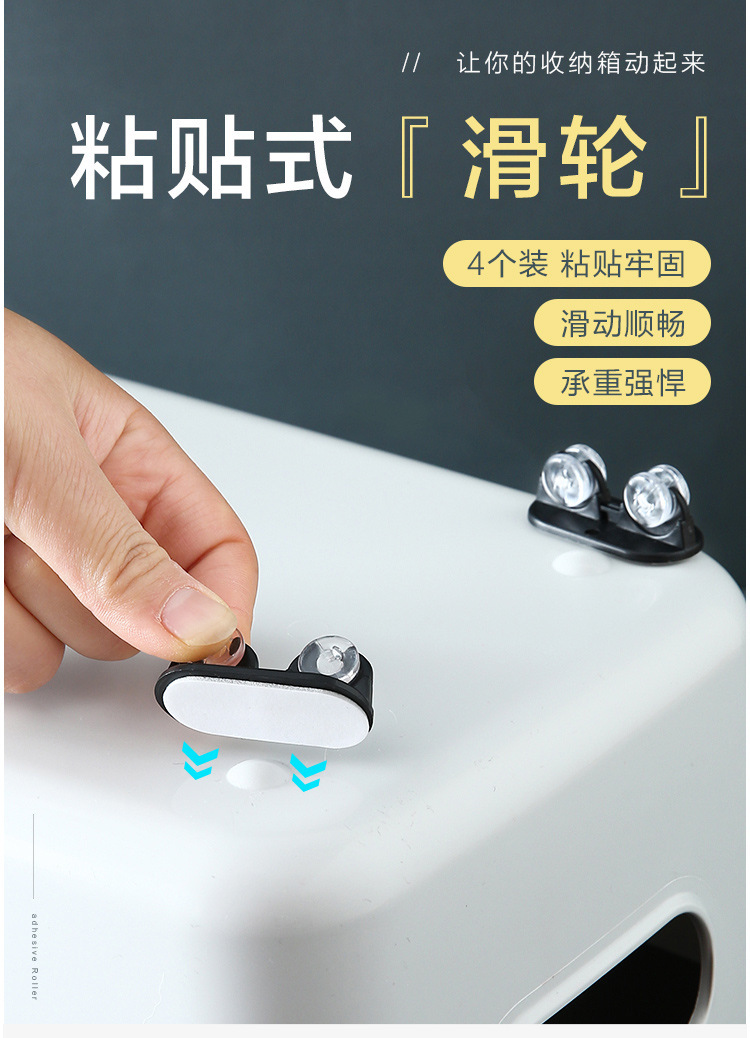 Креативный набор из 4-х самоклеящихся роликов, ролики для организационной коробки, универсальные односторонние ролики, колеса для хранения в домашних условиях