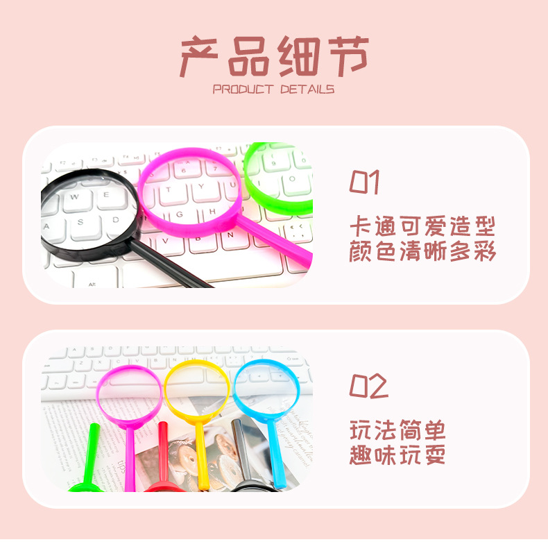 Пластиковая 60 акриловая HD цветная увеличительная лупа для детей, наблюдение, ручная наука и образование, исследование на улице, образовательные игрушки