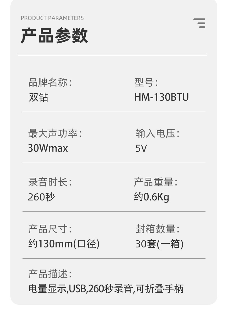 ![]() | Bluetooth model - supports tf card, u disk, bluetooth playback (with 2 lithium batteries + charging cable) | Gray plus white | ¥24.0 / ≈ 290 ₽ | 8467 | 5878326357200 | |